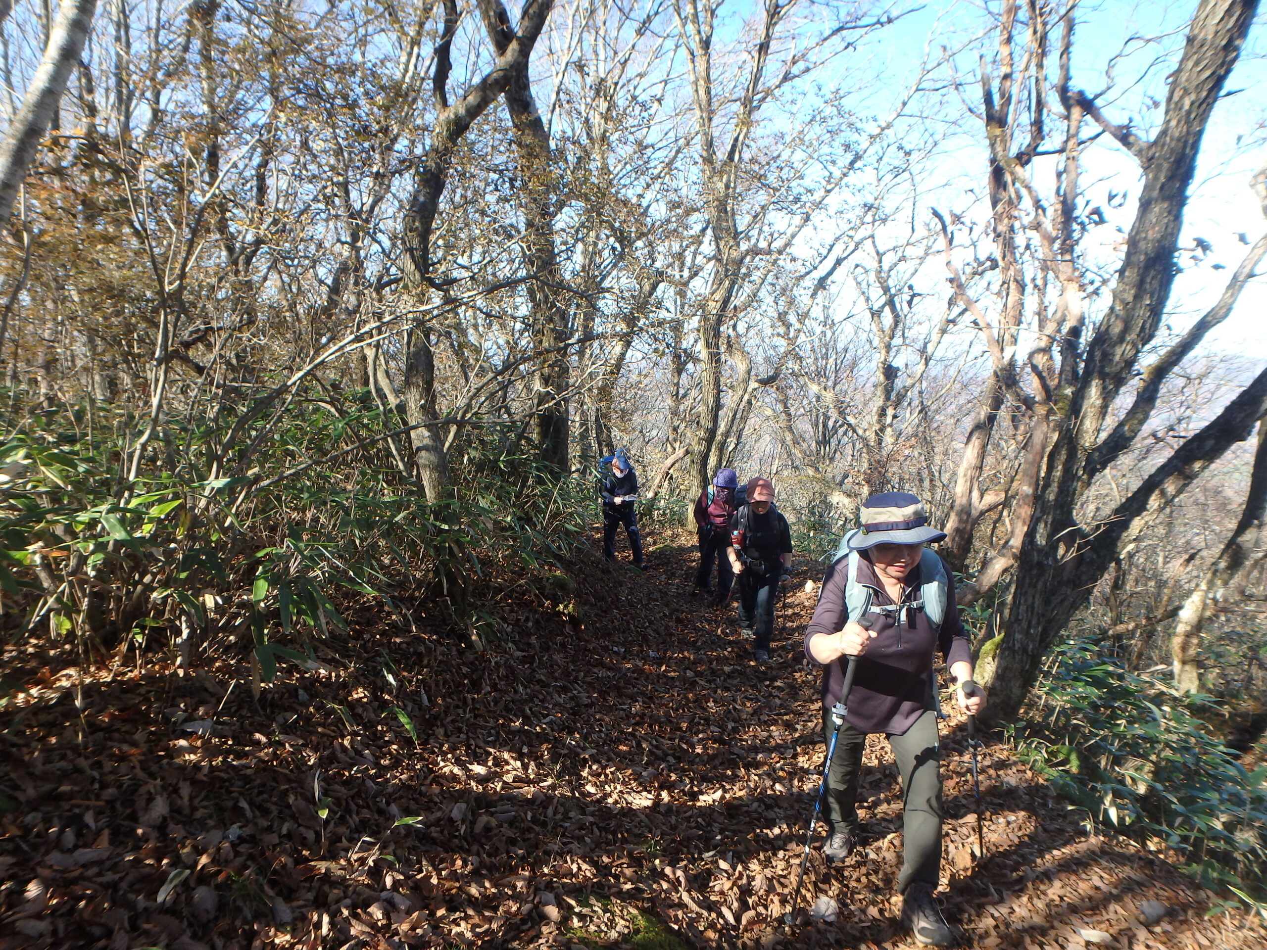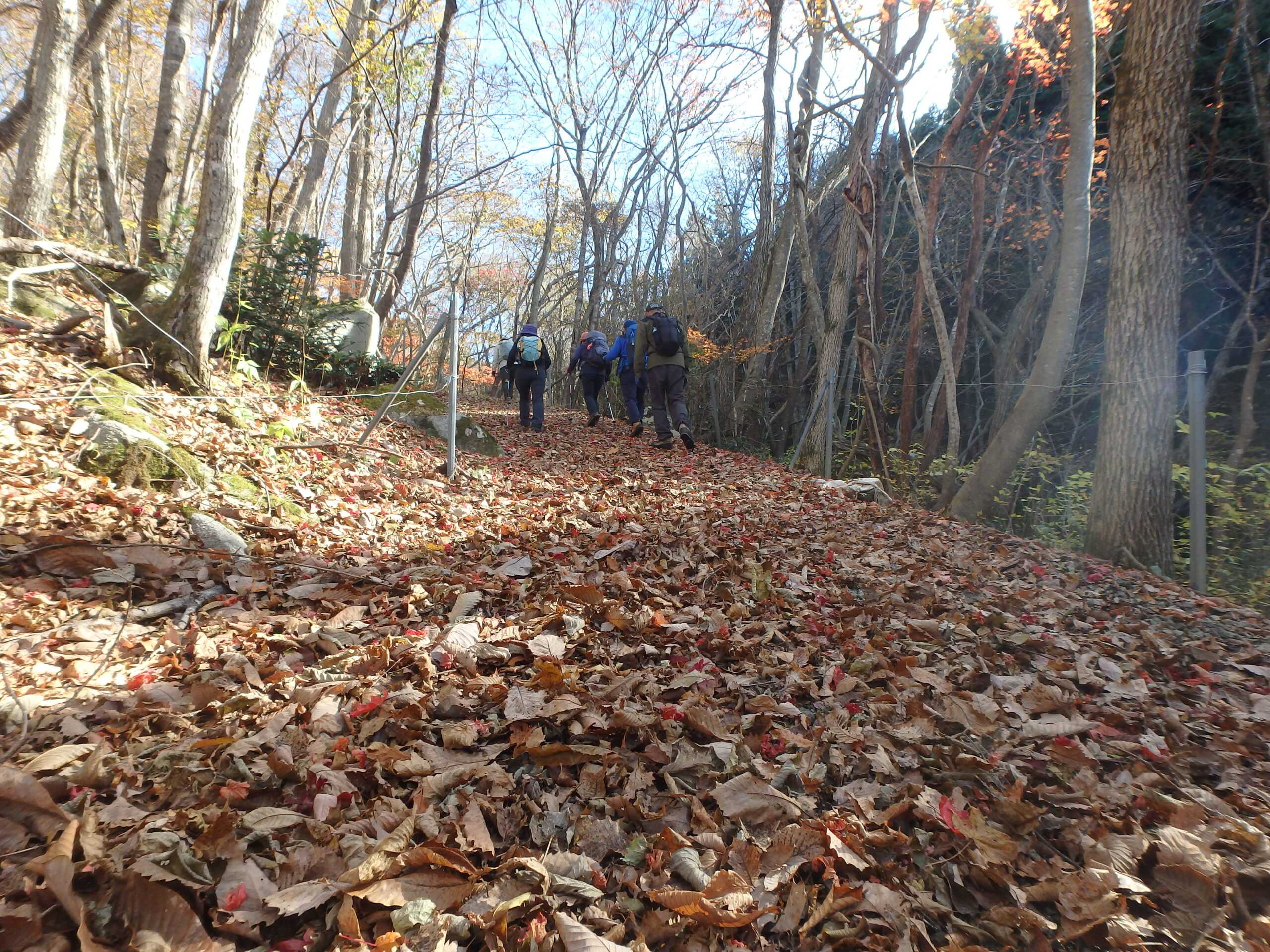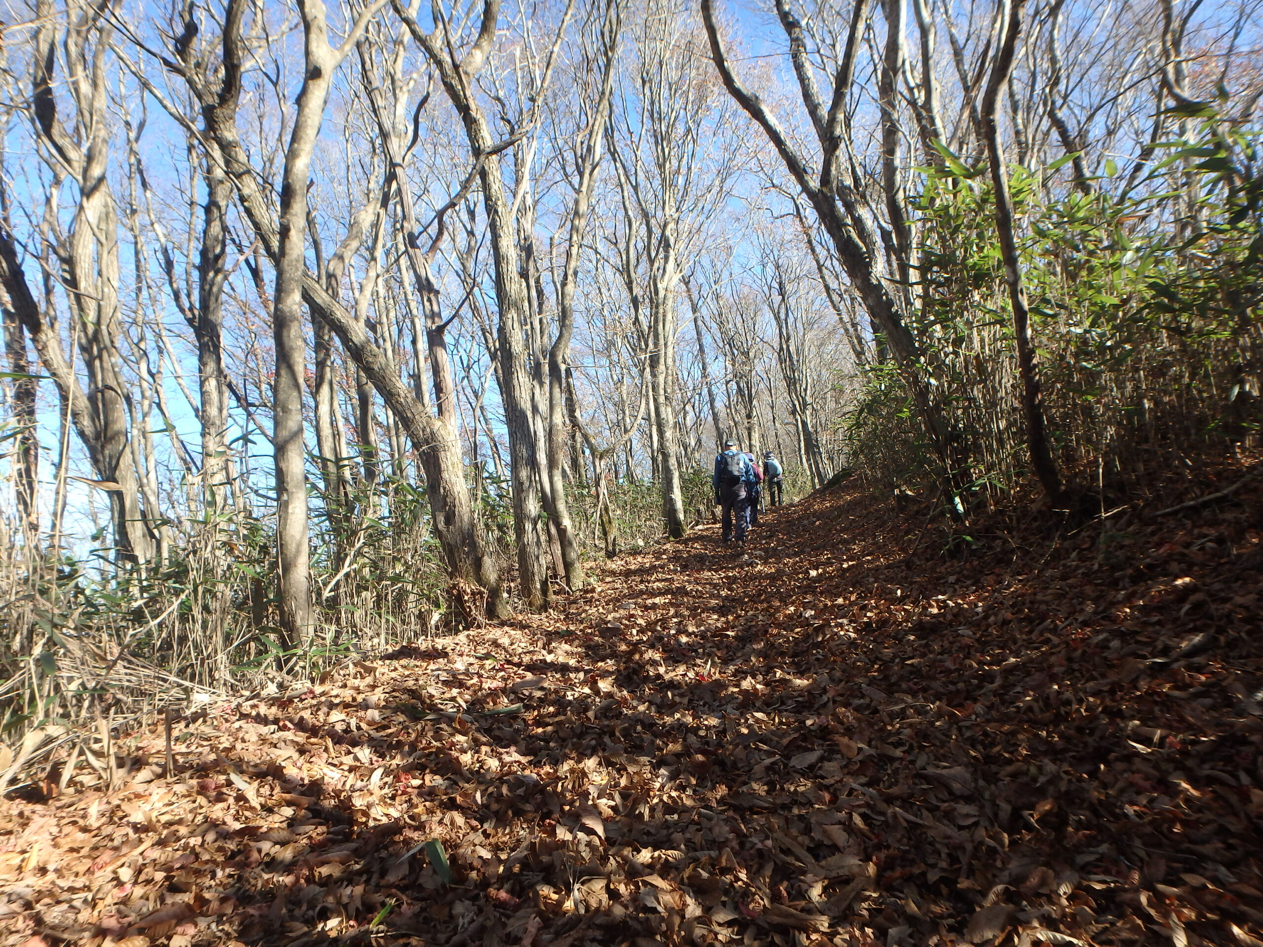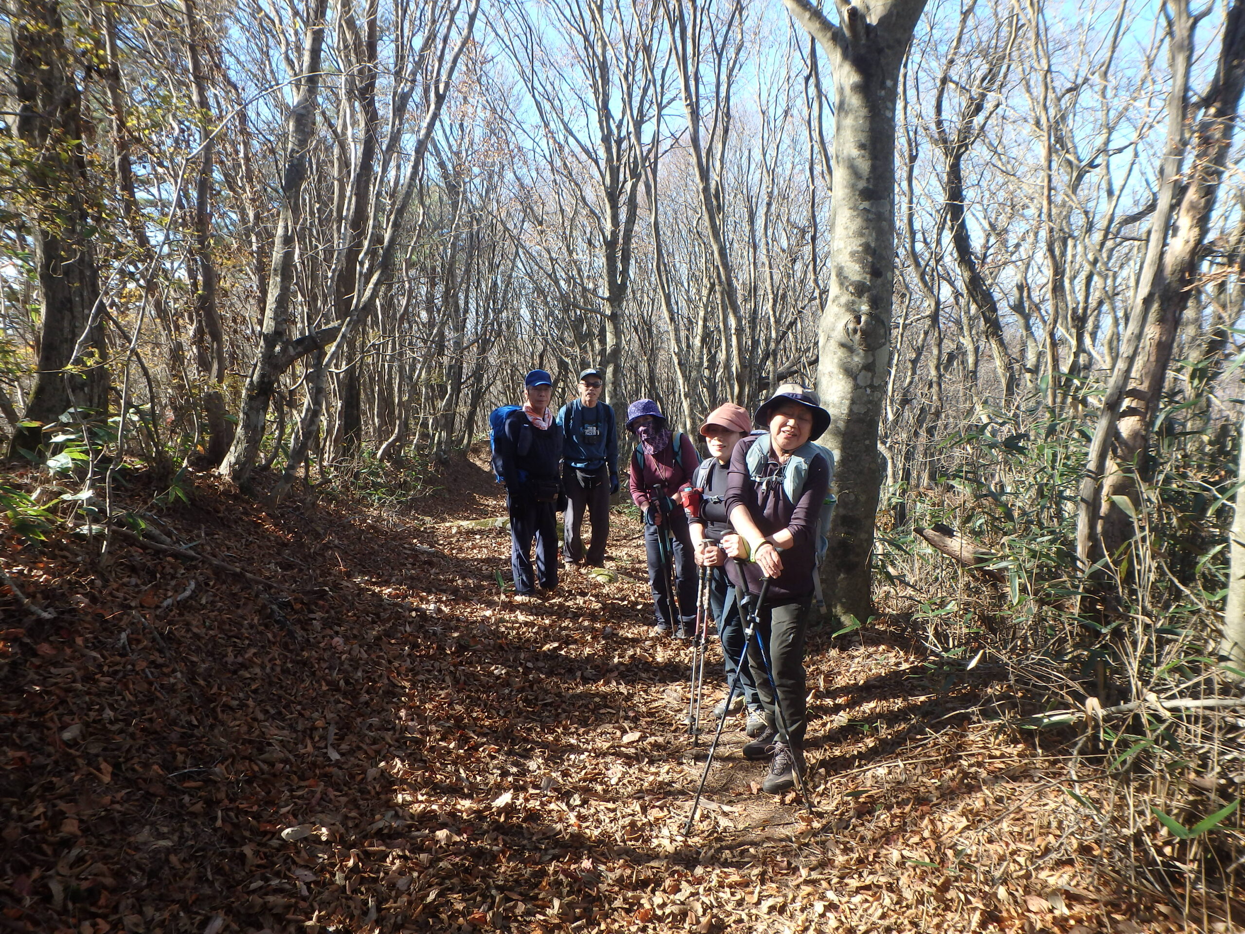 二日間ともよく晴れた小春日和、良く乾いたふかふかの枯れ葉を踏み続けた二日二山福島の山旅でした。来年の五月末、ヤマツツジが山を彩る頃にまた来ましょう。