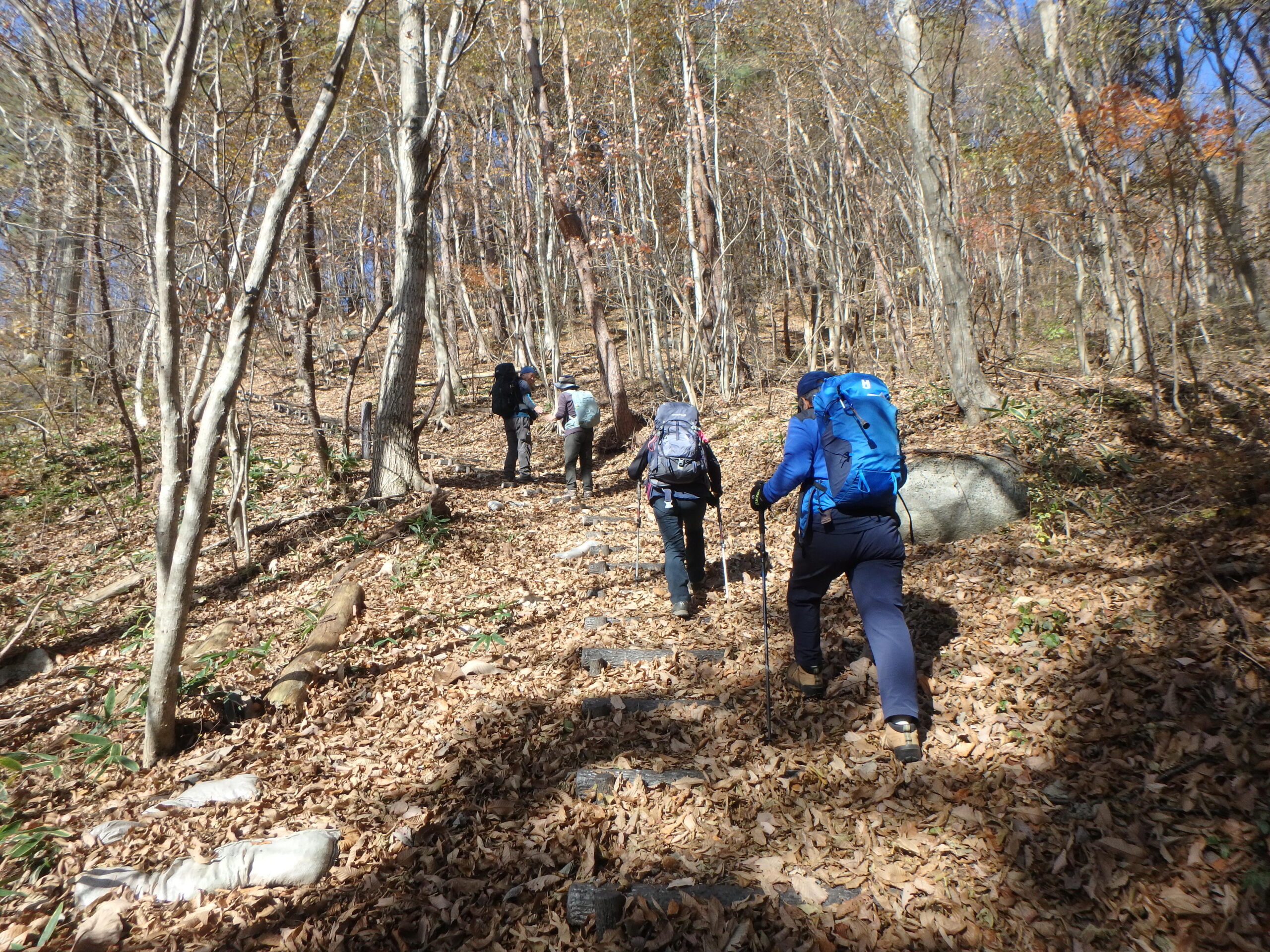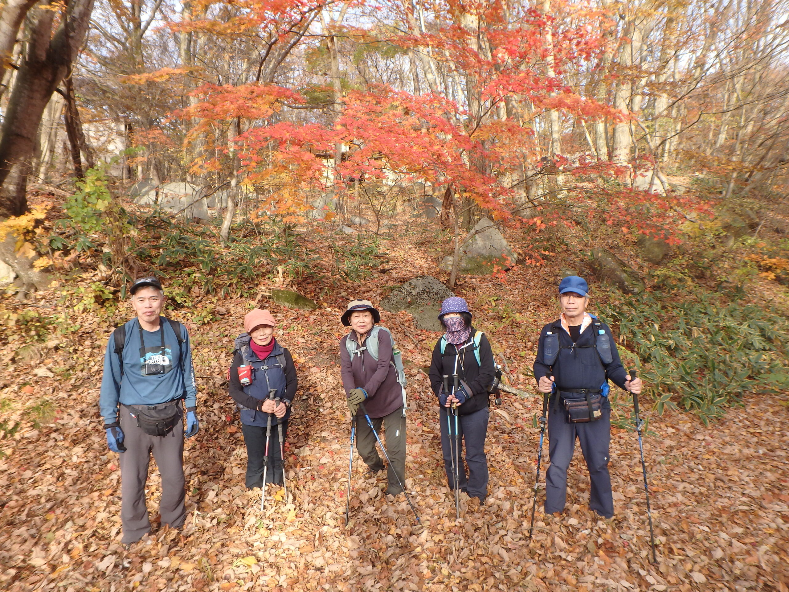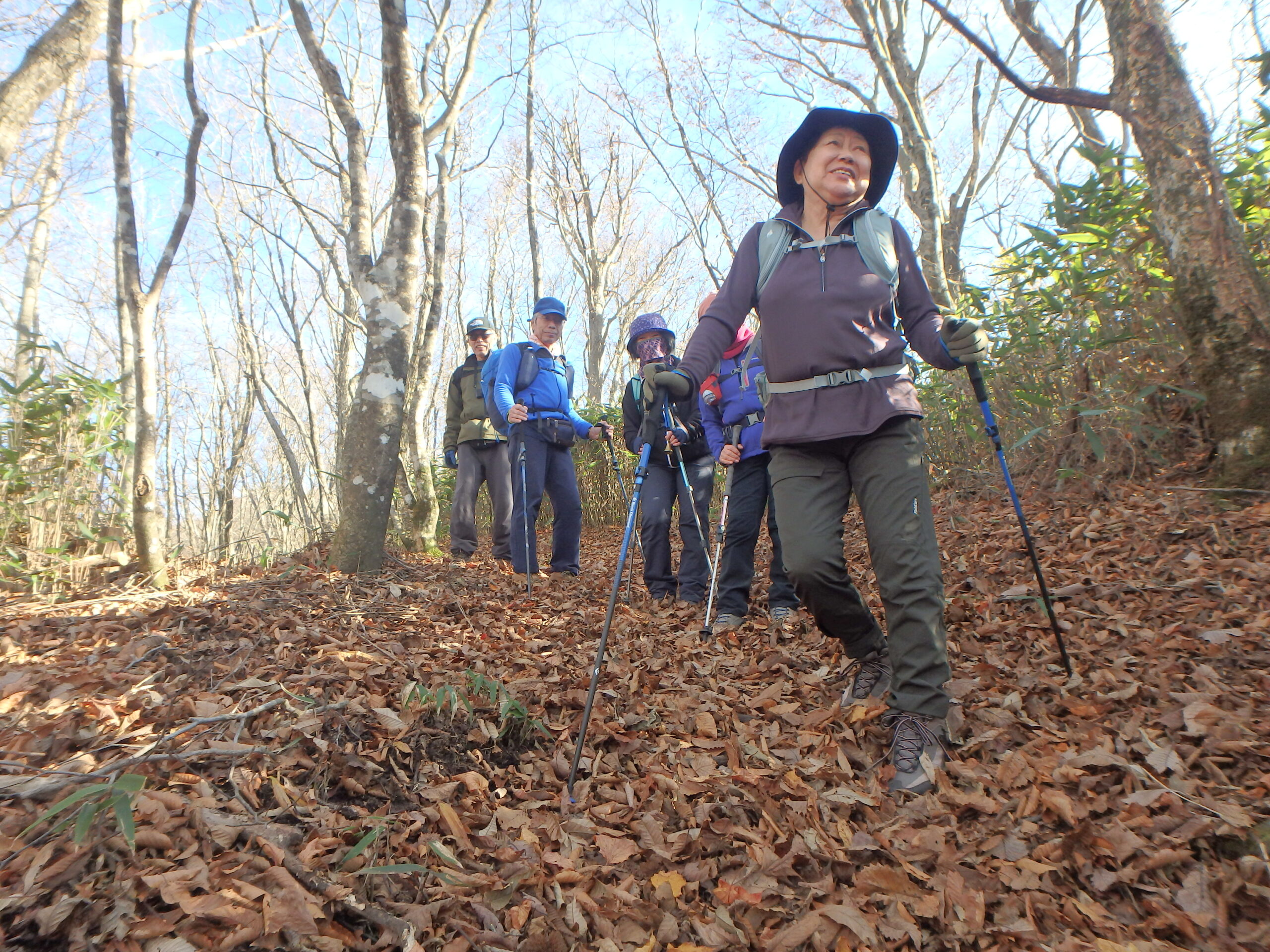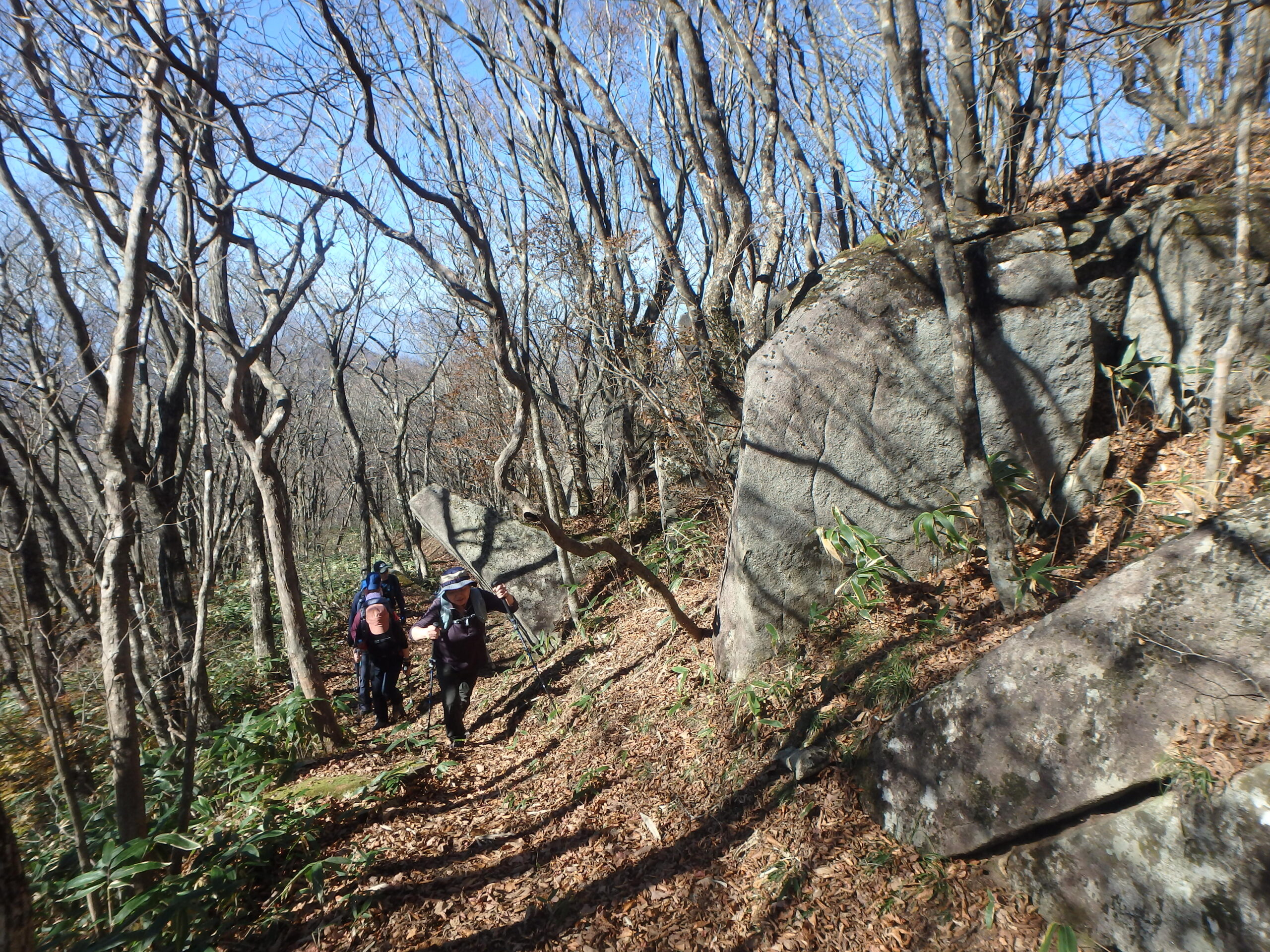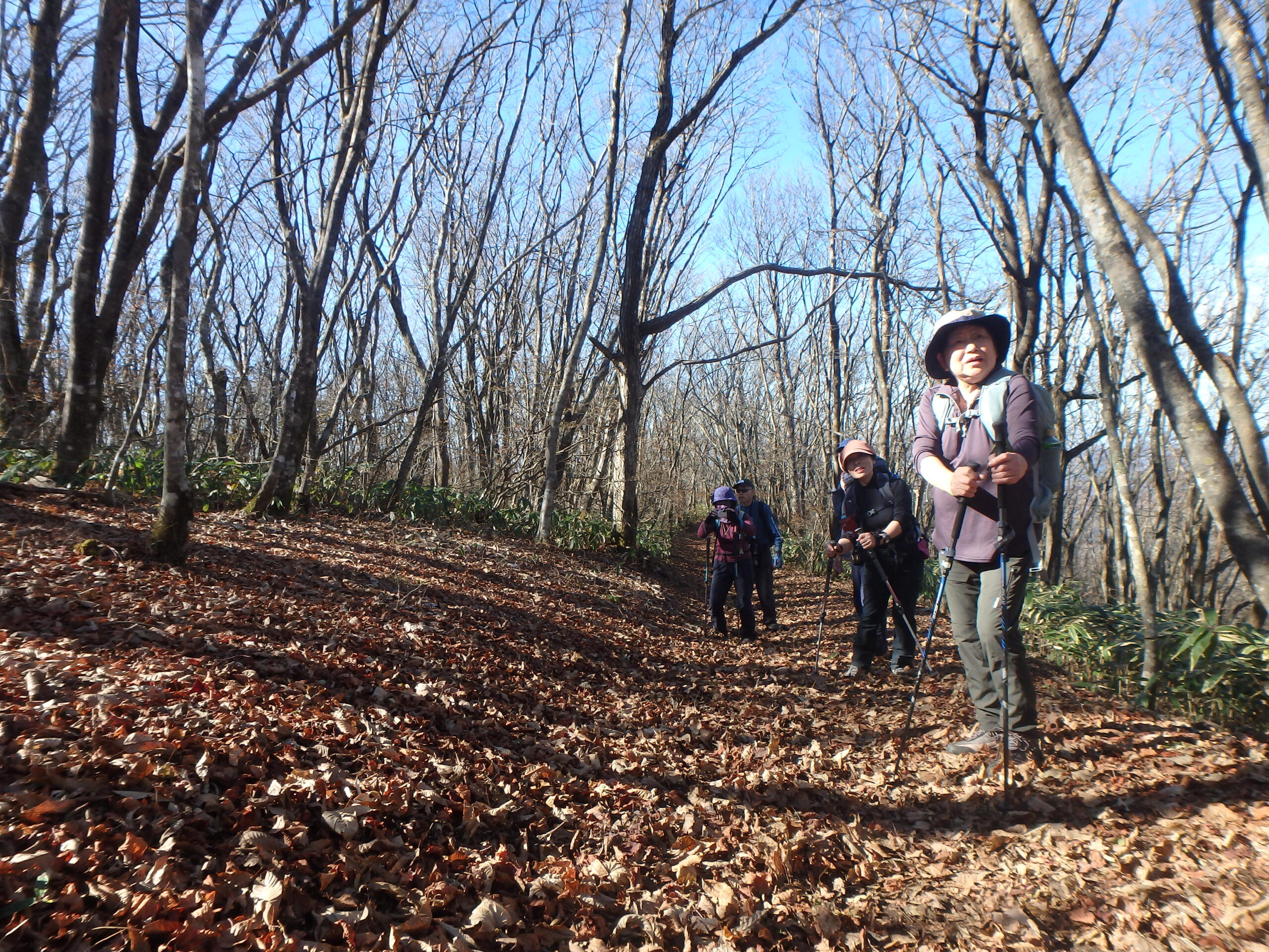 二日間ともよく晴れた小春日和、良く乾いたふかふかの枯れ葉を踏み続けた二日二山福島の山旅でした。来年の五月末、ヤマツツジが山を彩る頃にまた来ましょう。