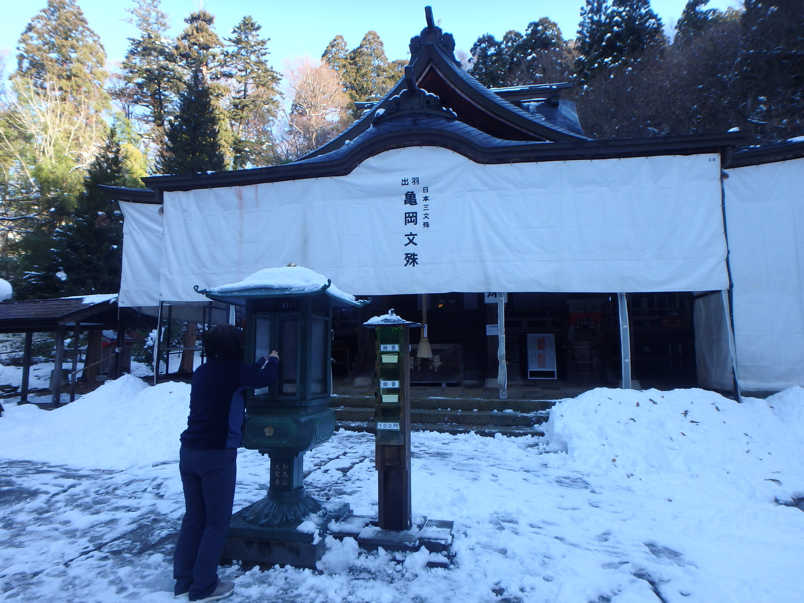 途中、亀岡文殊堂の文珠山に登って、二日で三山と思ったが、登山口に人気無く、雪も積もっていたので、文殊堂だけ拝観