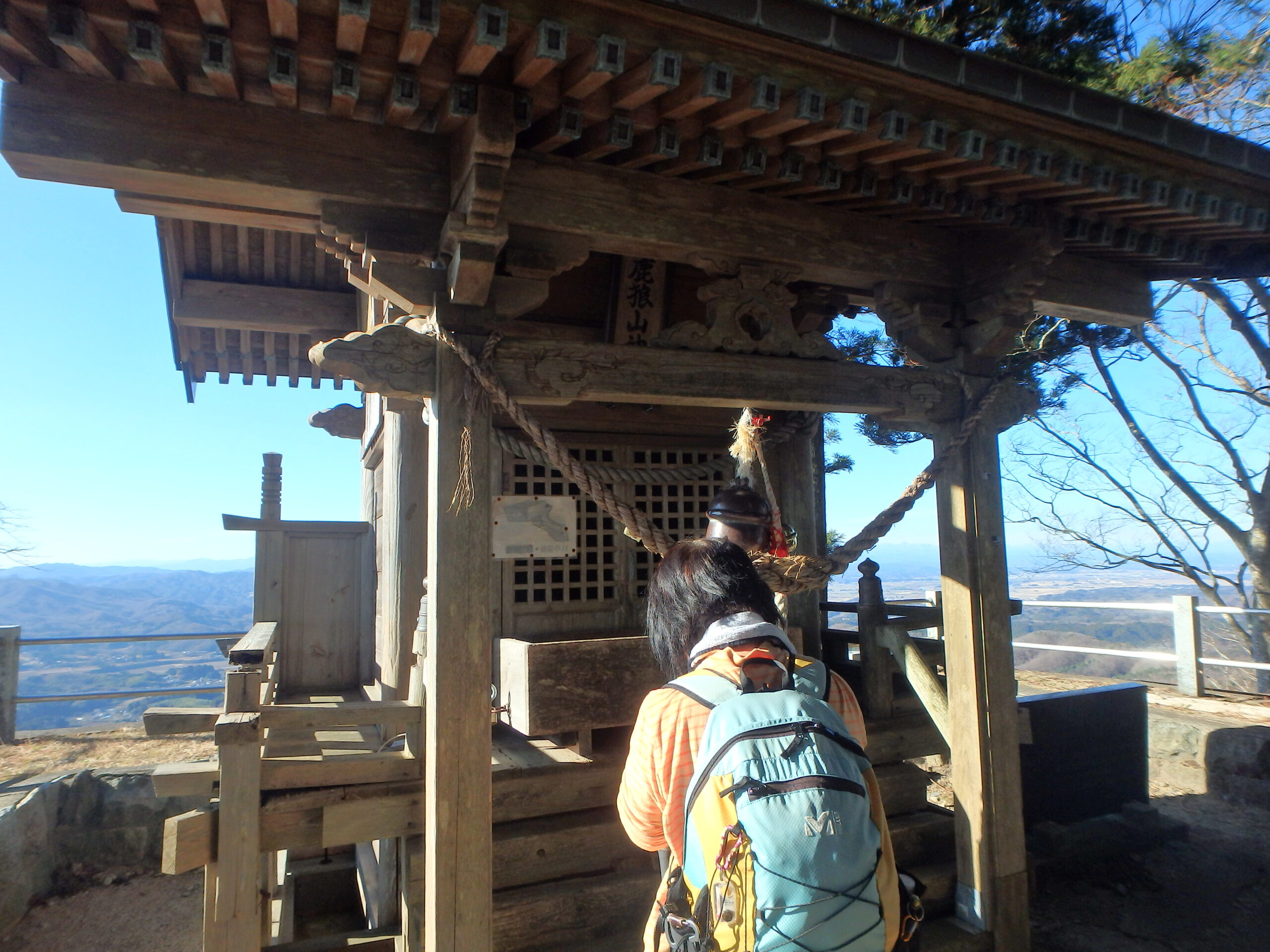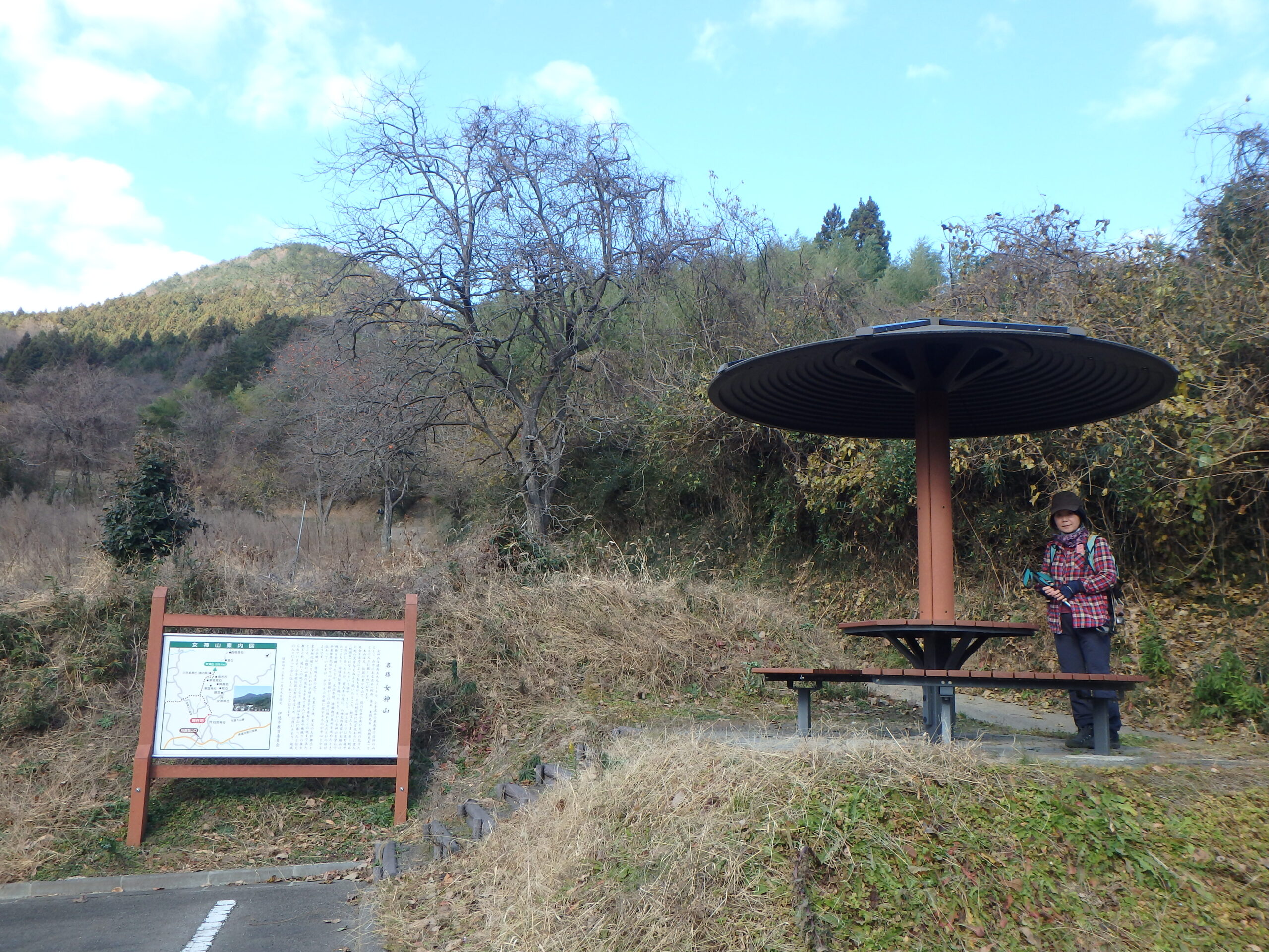 飯坂温泉に泊まって翌日女神山へ。一等三角点の山が左に見えている。駐車場も立派、この東屋も立派だが、すれ違った登山者は三人、二組。