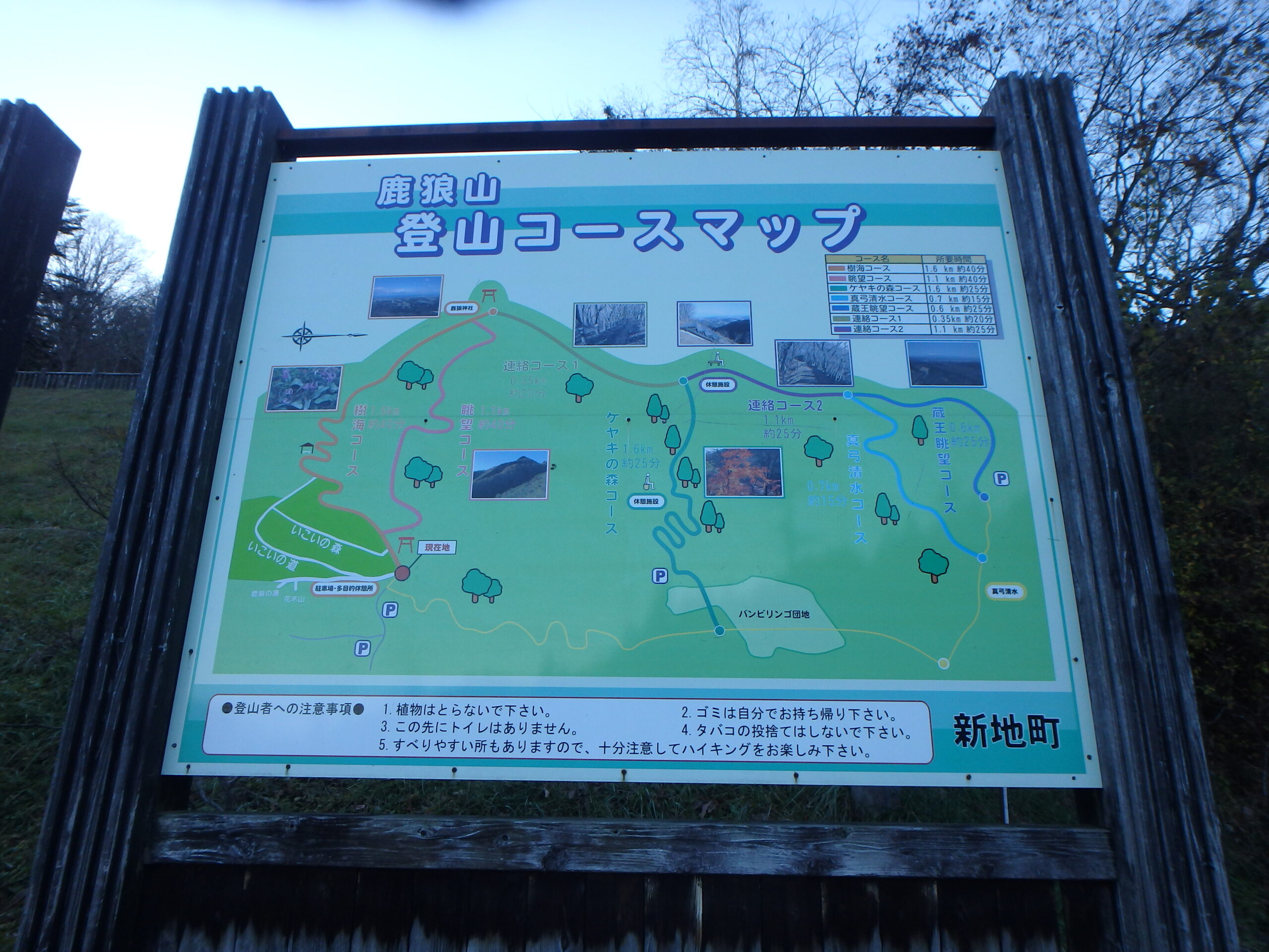 入口の登山マップ。眺望コースを登ったが、立ち木で眺望無く、帰りは樹林コースを下った。