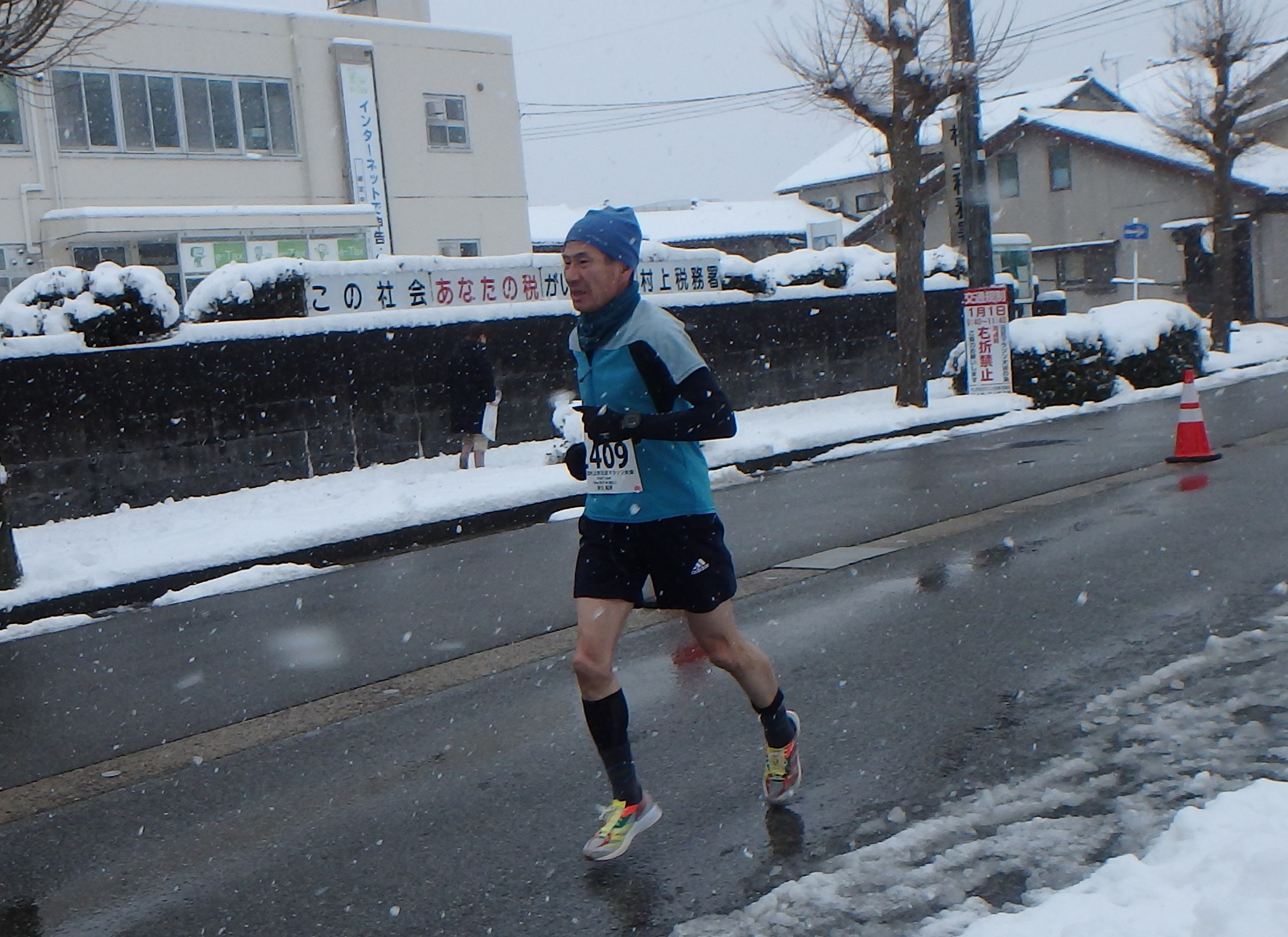 初めて村上市の元旦マラソンに出たのは50歳の時で、45′39″。順位は14位で、あと少し頑張れば8位以内の入賞もできると思ったことを良く覚えている。59歳で迎えた2017年の41′43″が最高記録で、4分縮めるのに9年も掛かっている。それからコロナもあって大会は中止が続き、練習量も落ち、当然記録は落ちる。再開した2023年は46′41。6年で5分落ち、最初の記録より1分も下回った。その後46′55″、昨年はインフル罹患で欠場、今年は46′55″と一昨年と同タイムで、なんとか46分台ギリギリで走り、これもギリギリ8位入賞は嬉しかったが、昔のように練習した分だけ記録が伸びるという喜びはない。ただ以前と違うのは、スマホで映像を見て、フォームを変えようと努めたり、新しい練習に取り組んだりするのは面白い。面白いと思えるうちは続けて、この4年間46分台という、喜ぶべきか悲観すべきか分からない記録を乗り越えて、来年はキロ4′30″で45分切りを目指そう。走ることで山登りの体力を培うことは勿論だが、様々学ぶこと、得られることも多いから。