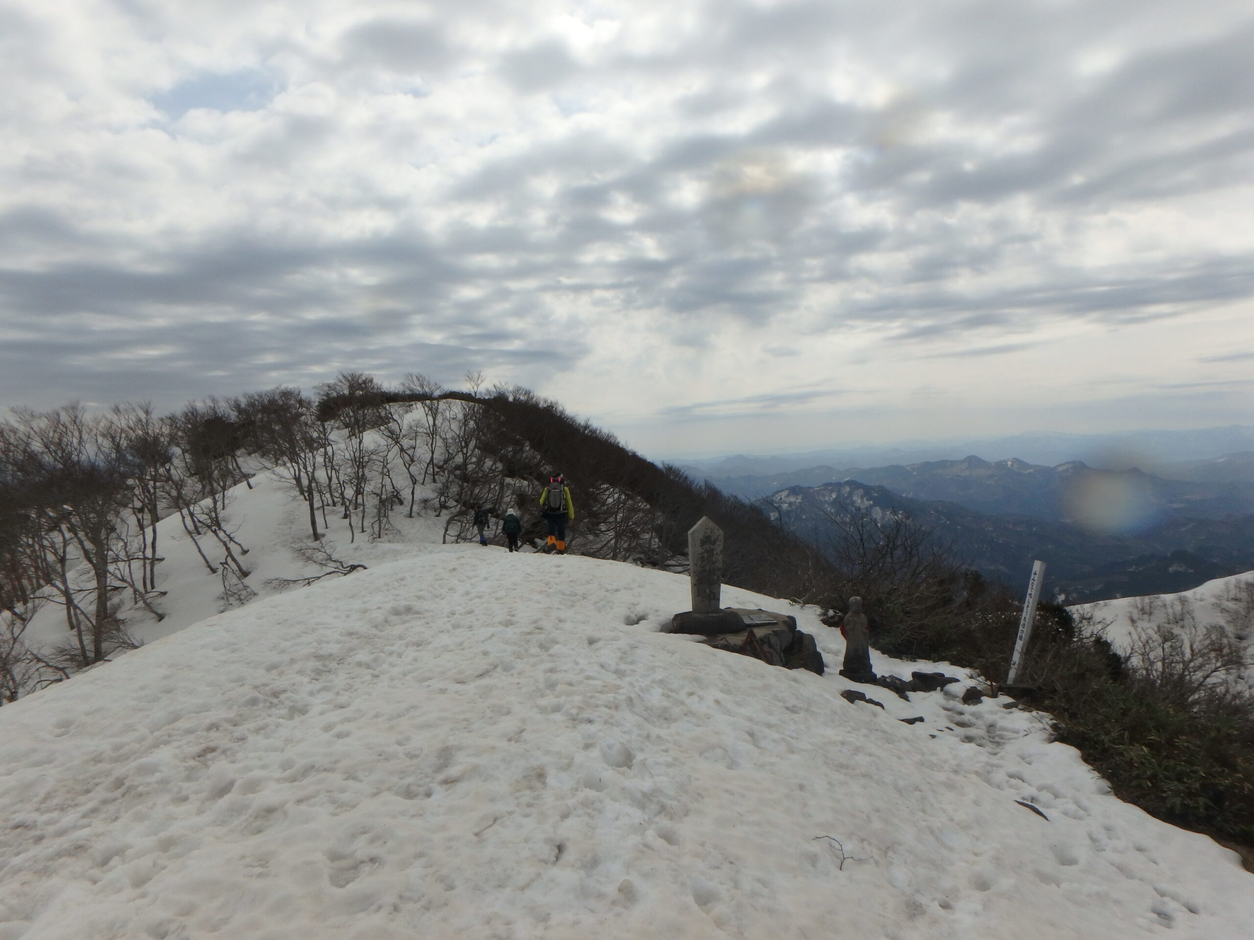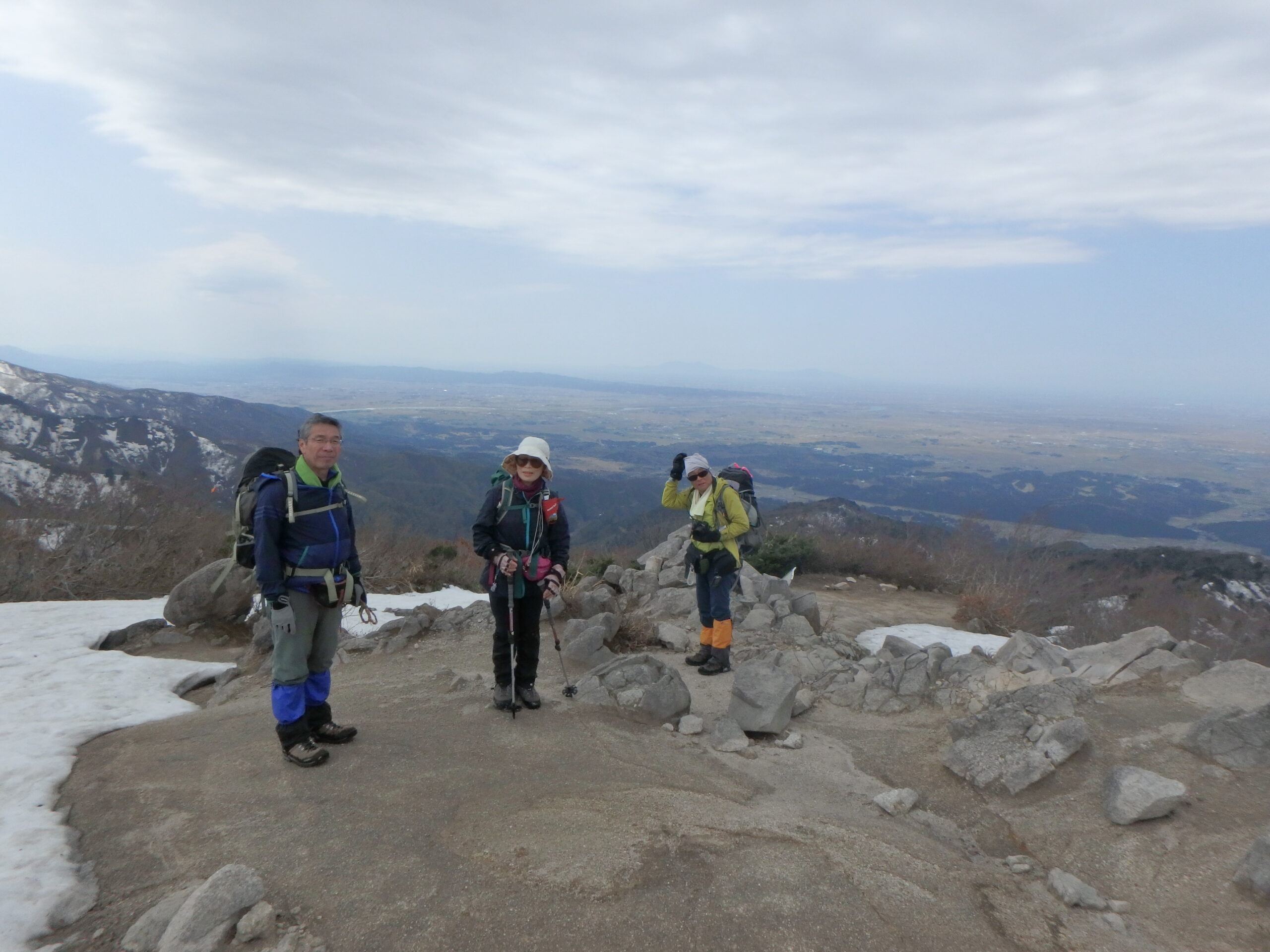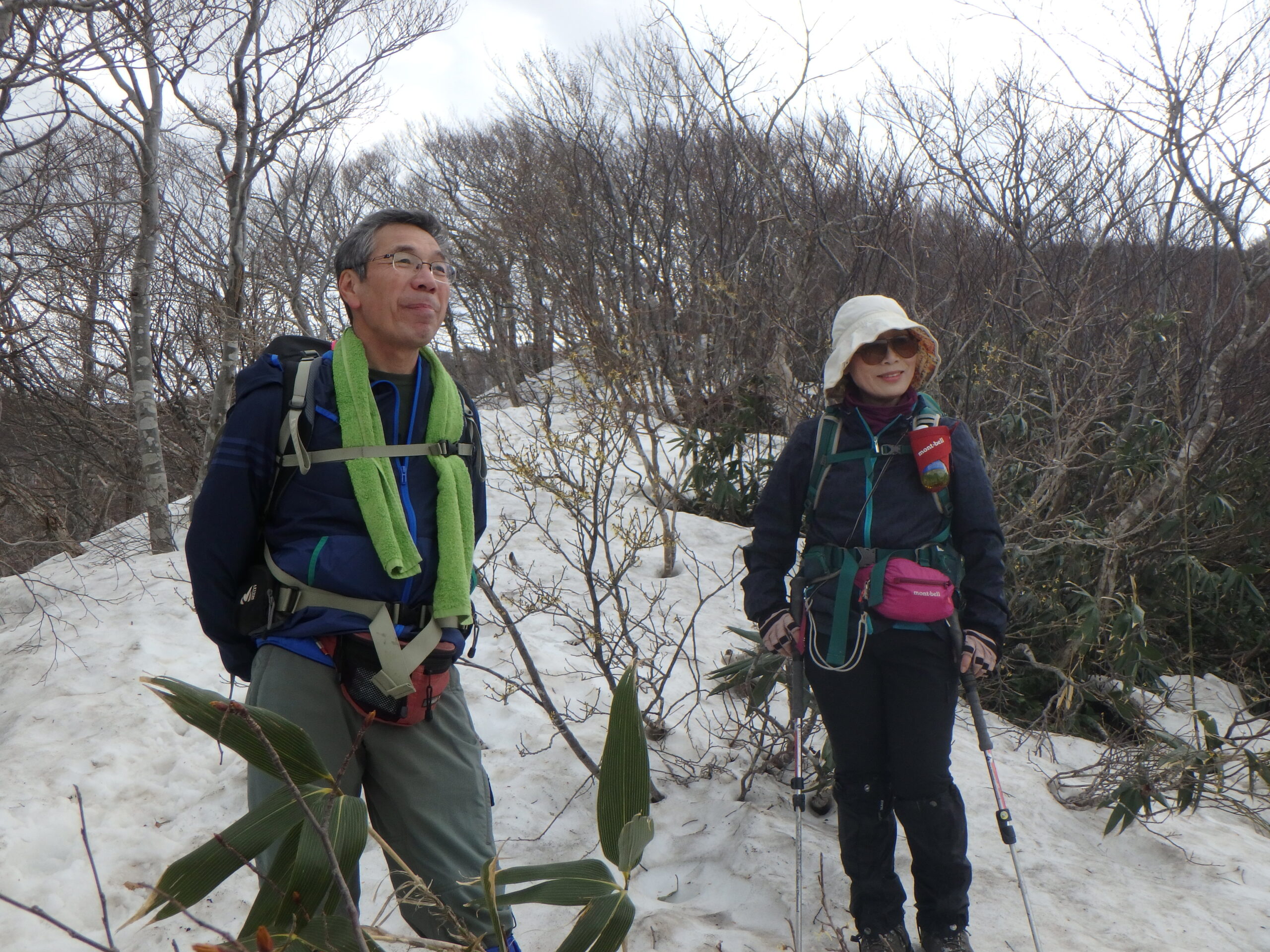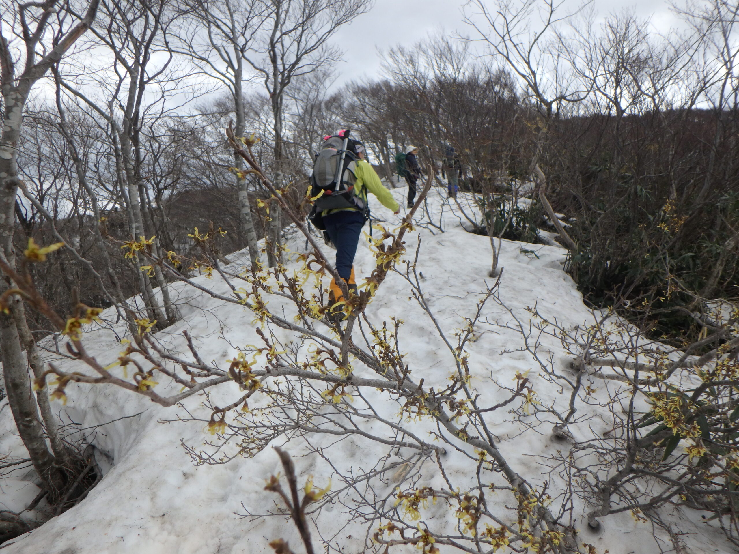 一番登る山は五頭山。光兎でもなく朴坂でもないのは冬でも登り易いのと、展望が良いことによる。里山に登るのは冬が多くなった。今回は健康登山の下見。退職はしたが、公民館登山は引き続き担当となった。山仲間のお陰である。残雪期の五頭を公民館の登山とするのは8年ぶり。