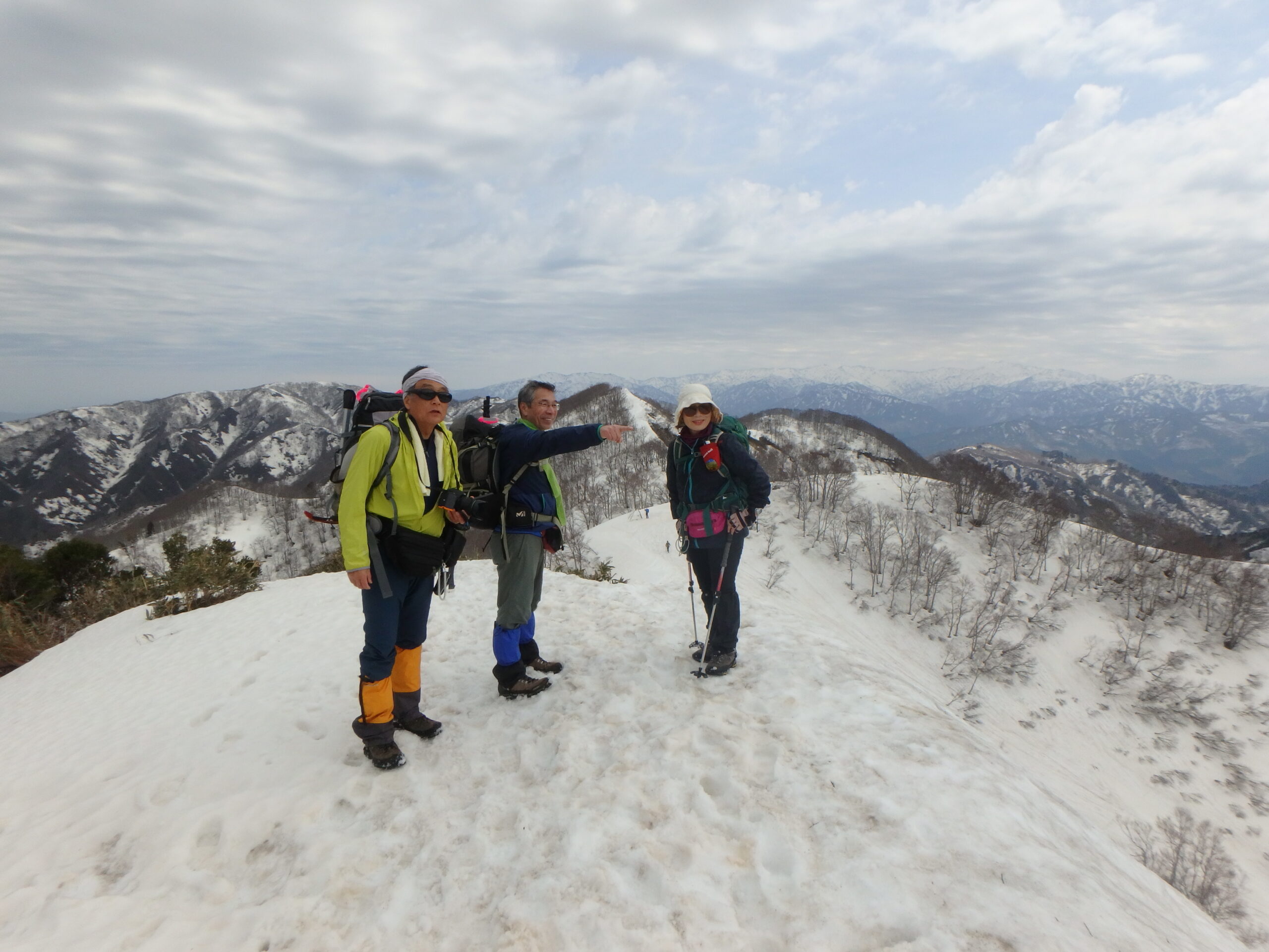 一番登る山は五頭山。光兎でもなく朴坂でもないのは冬でも登り易いのと、展望が良いことによる。里山に登るのは冬が多くなった。今回は健康登山の下見。退職はしたが、公民館登山は引き続き担当となった。山仲間のお陰である。残雪期の五頭を公民館の登山とするのは8年ぶり。