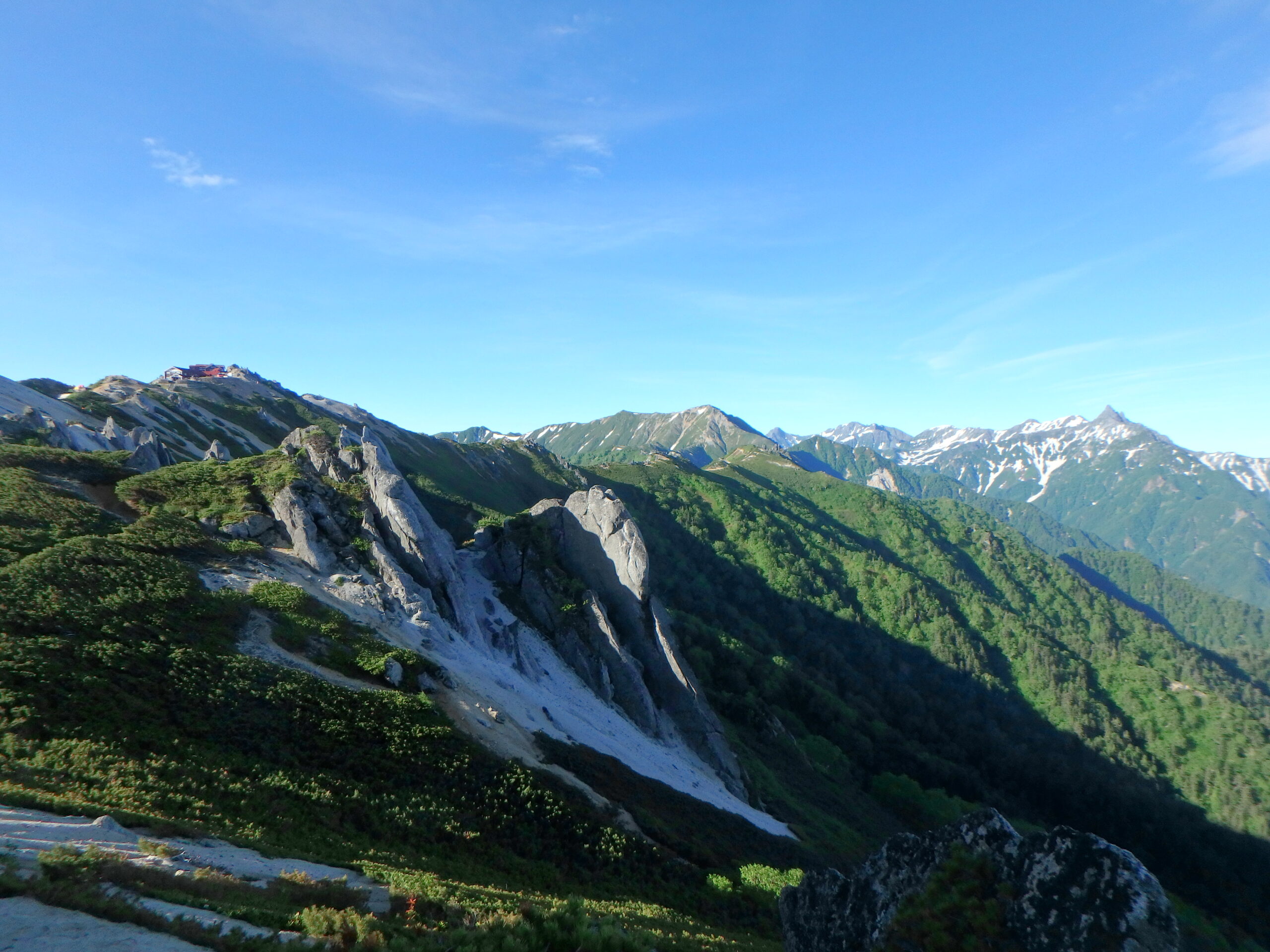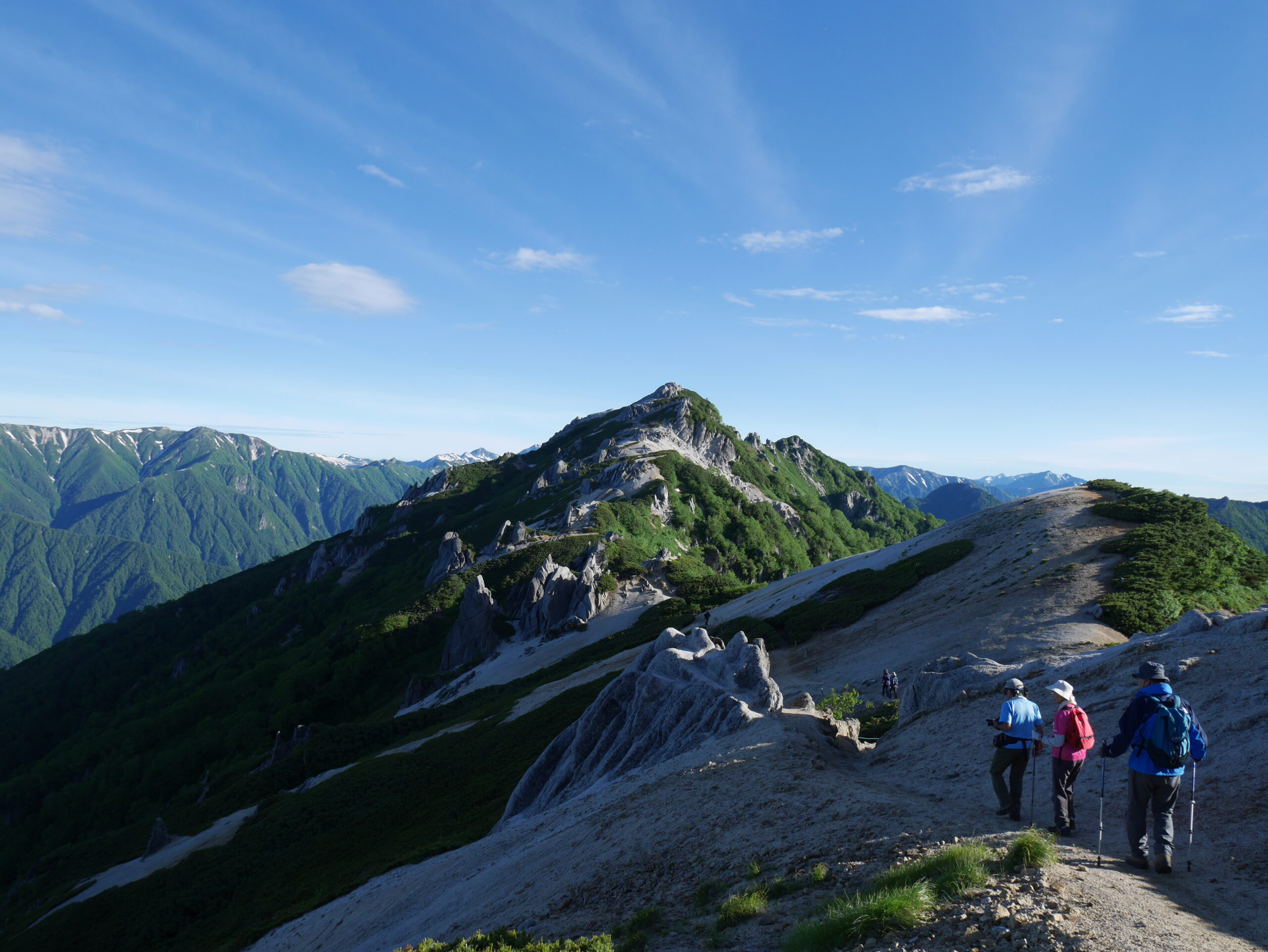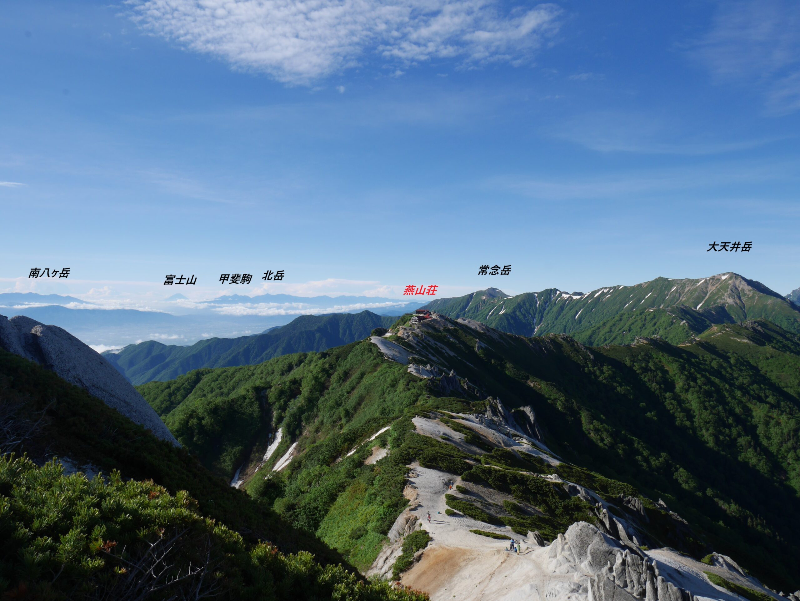 朝食後再び燕岳へ。燕岳の右には蓮華、白馬、鹿島槍。