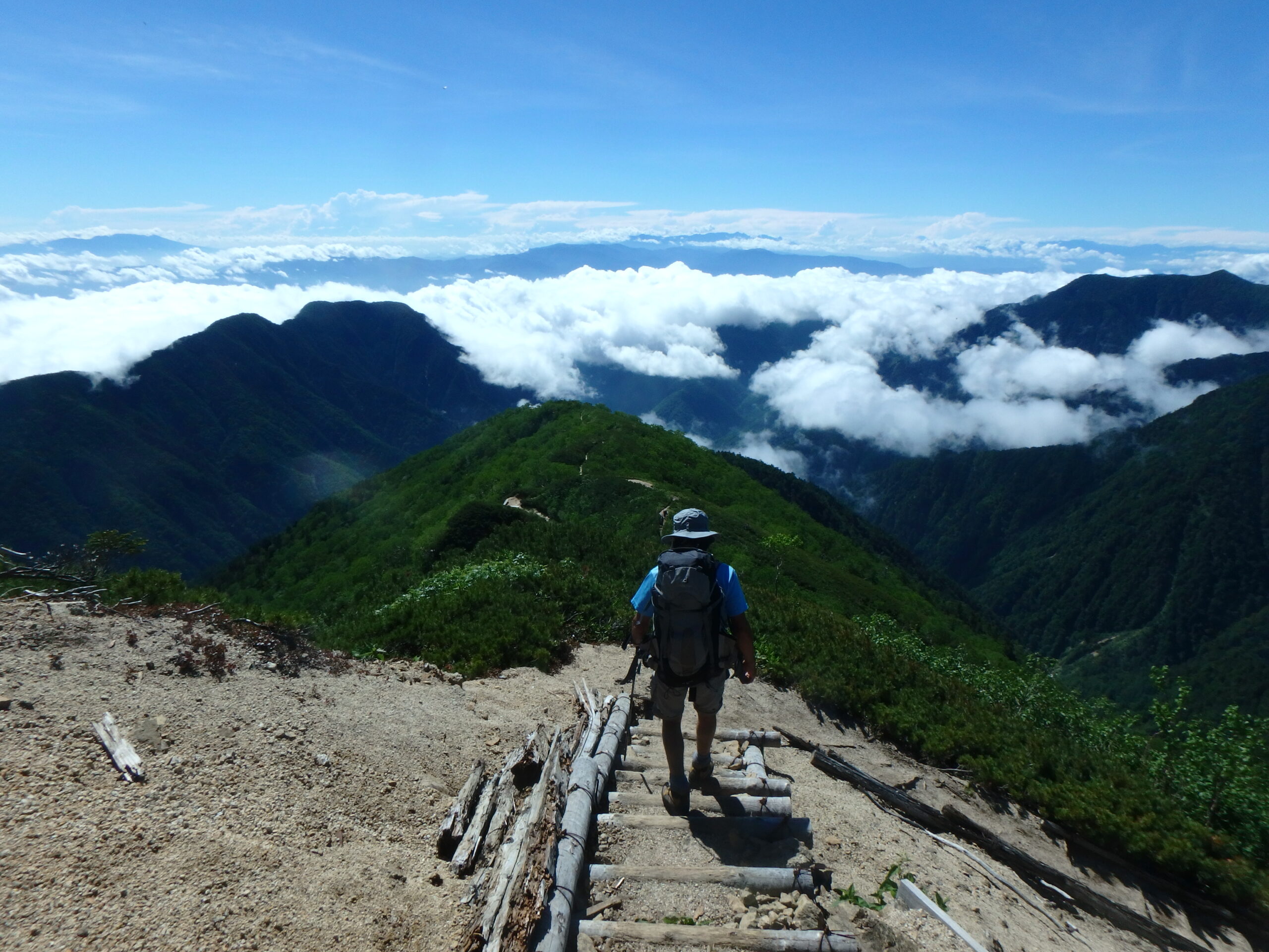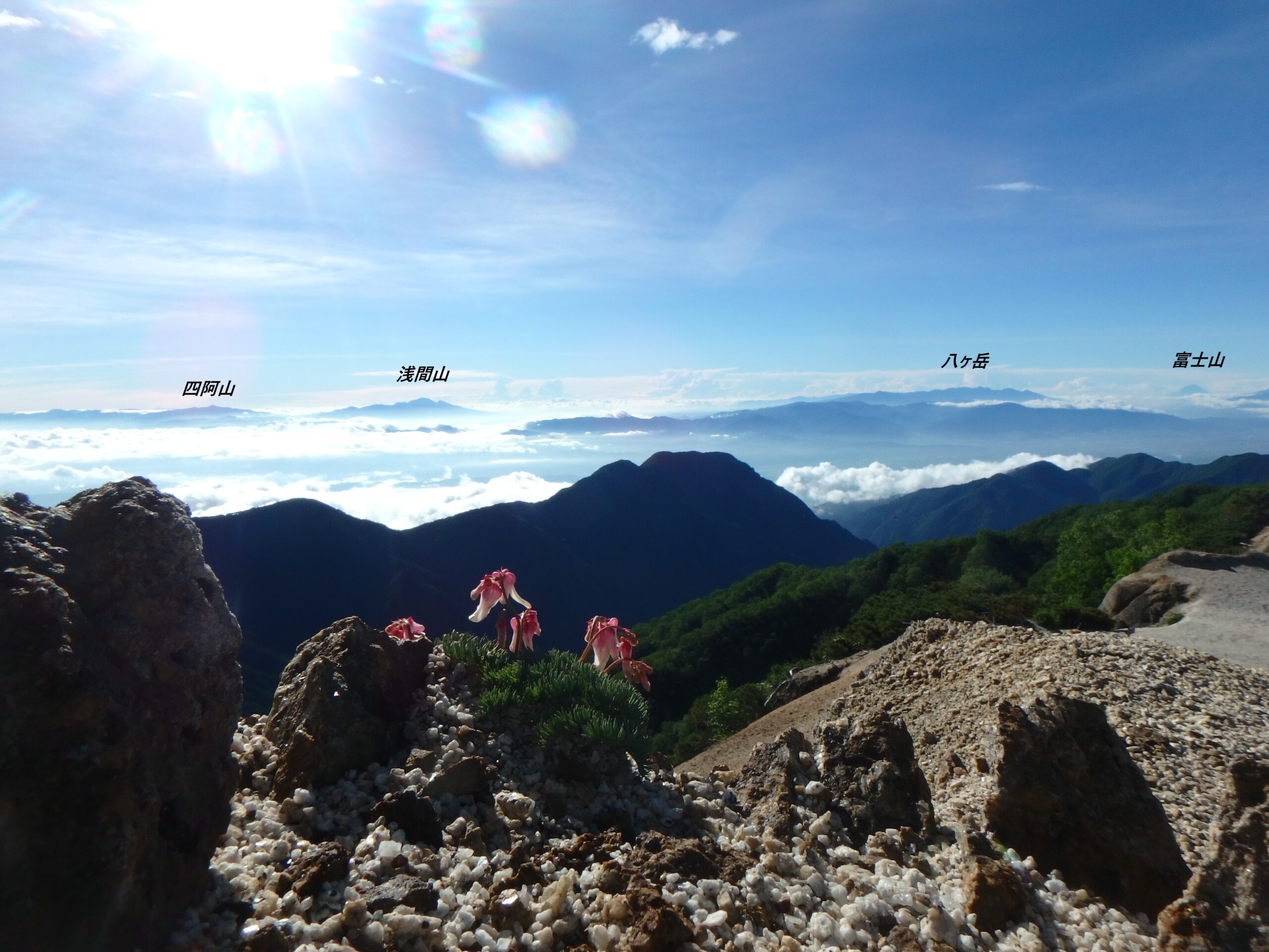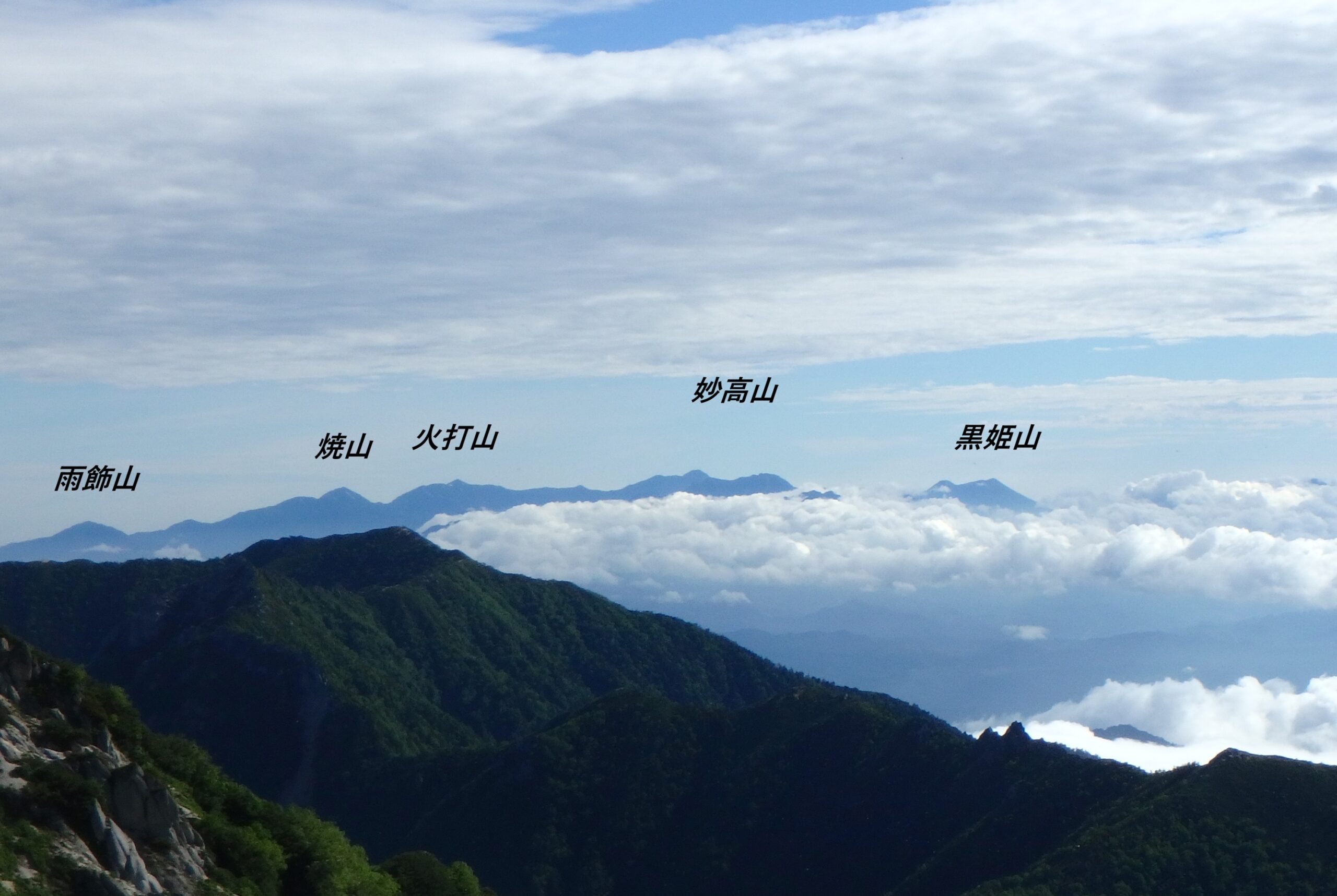 新潟頚城三山は雲の上。妙高と高妻山が重なっている。