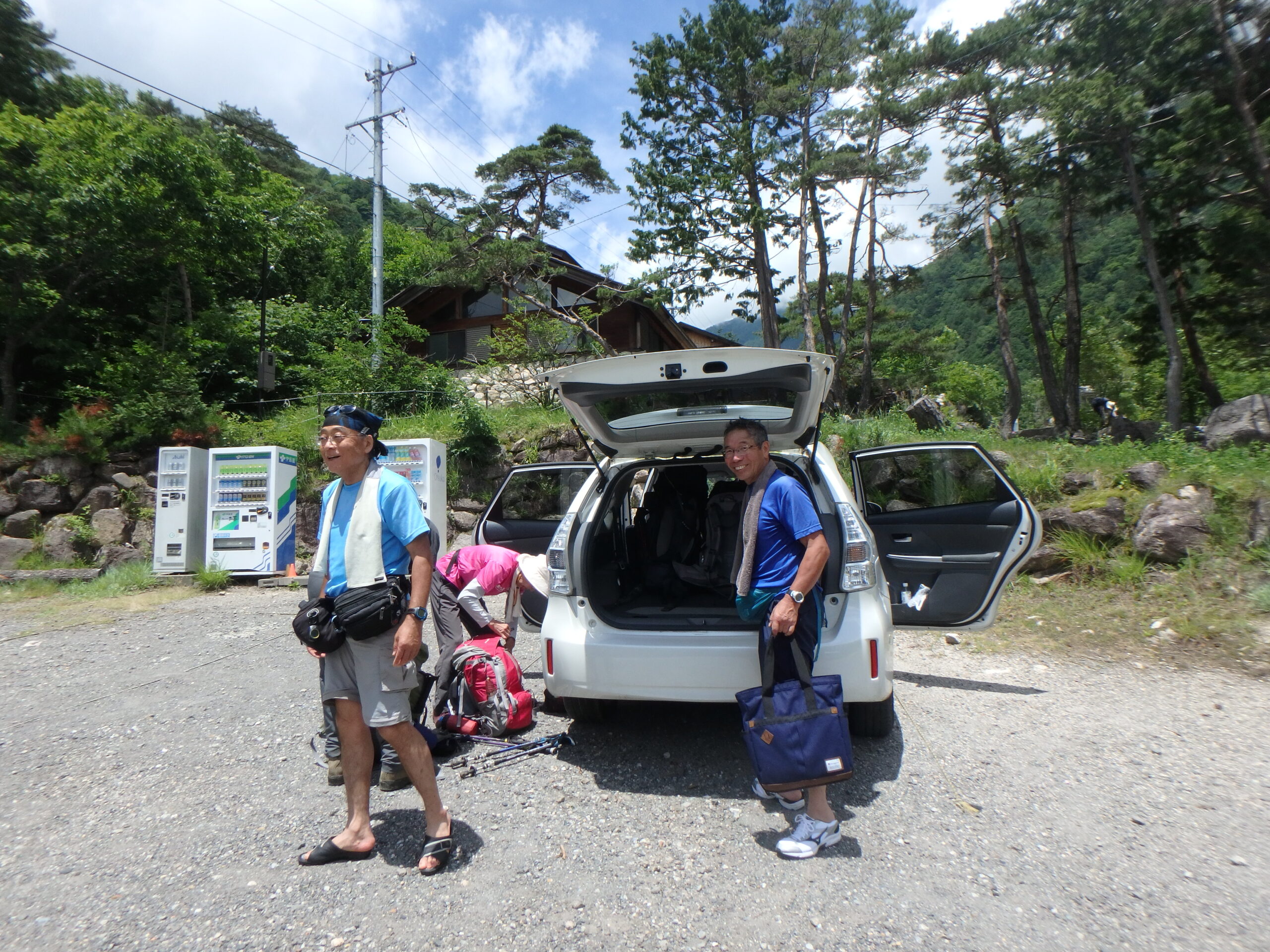 中房温泉駐車場に無事下山。最高の笑顔が最高の景色に出会えた証。