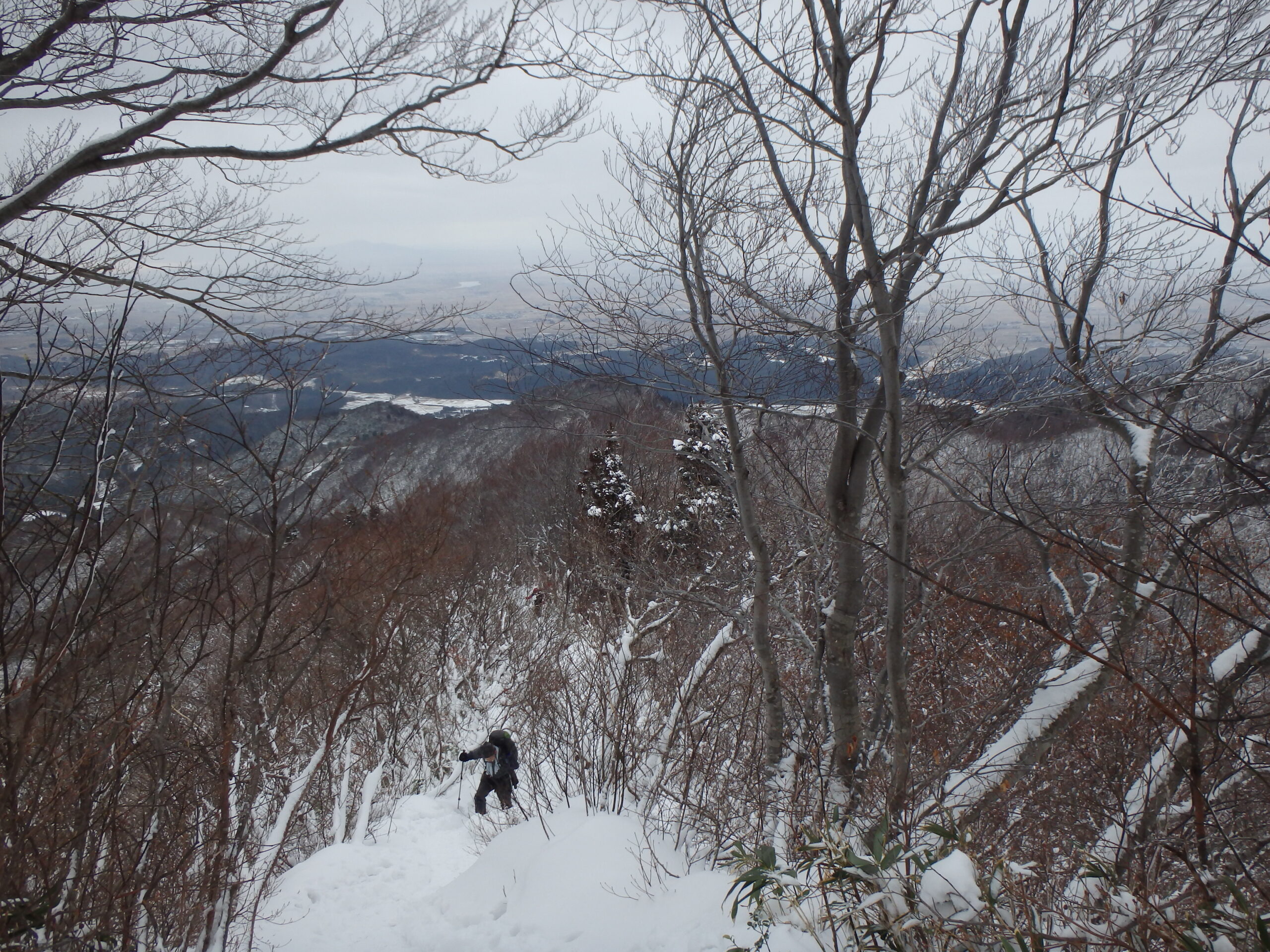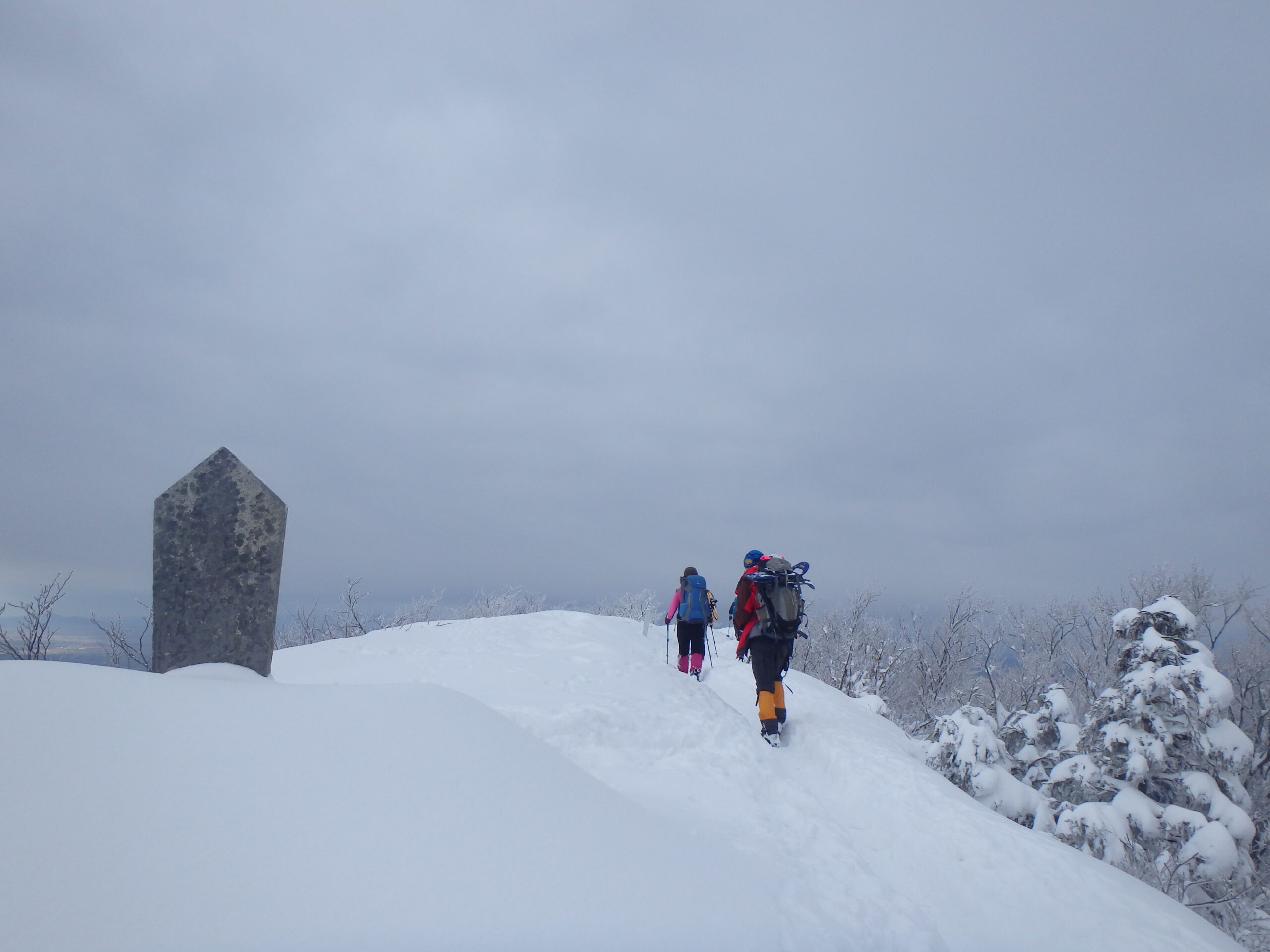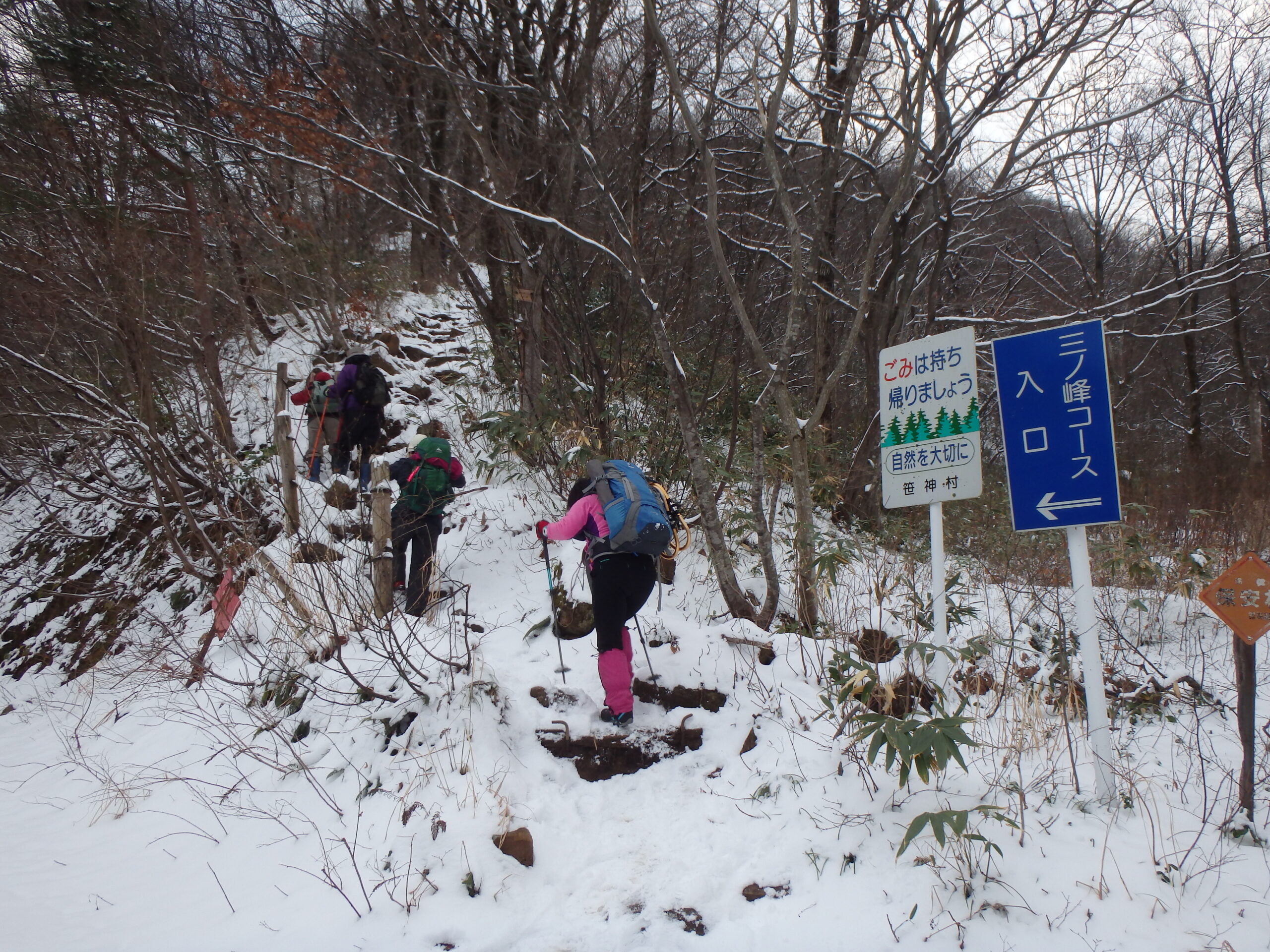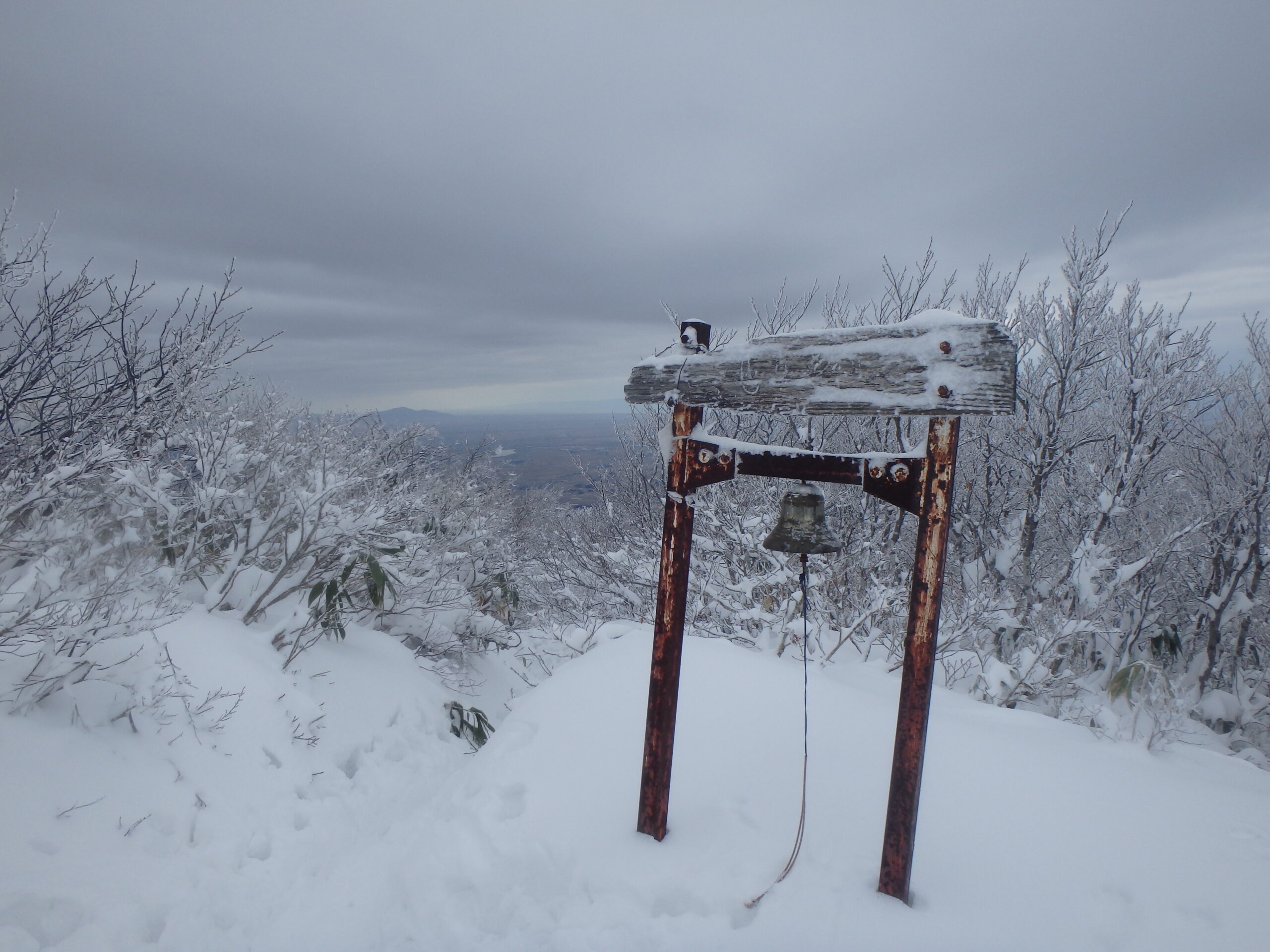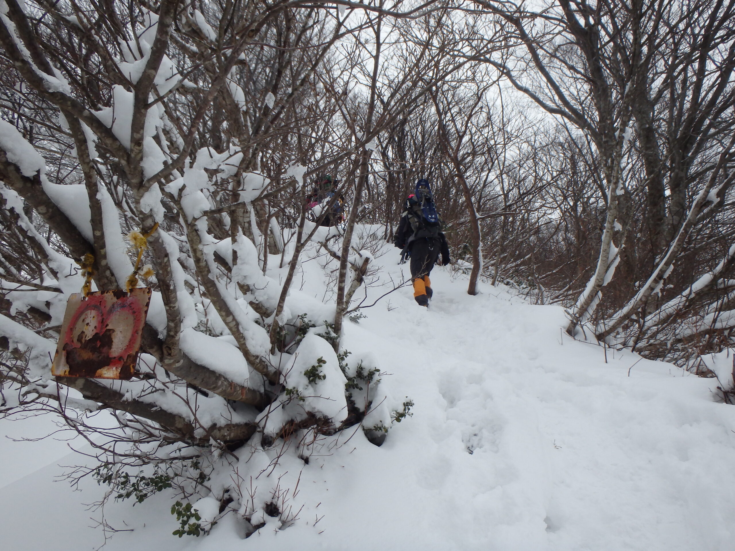 冬は二ノ峰のピークに直接登るのだが、雪が少ないために夏道にトレースがついている。