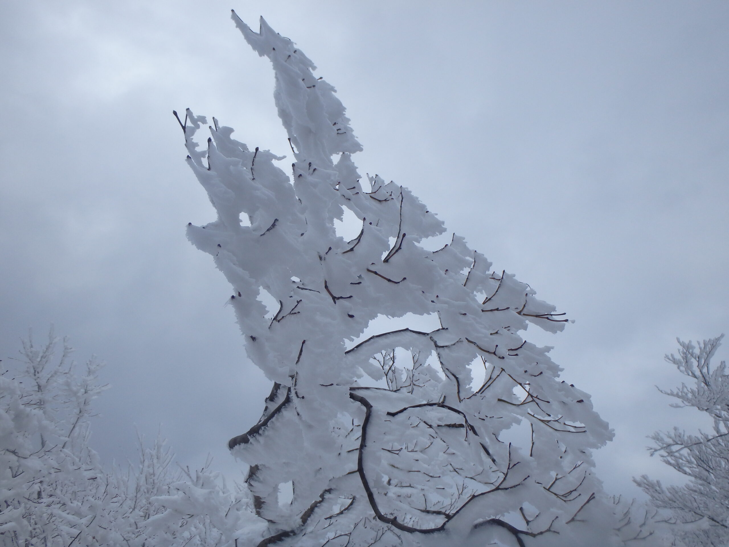 八合目を過ぎてようやく樹氷に。皆の顔もほころぶ。