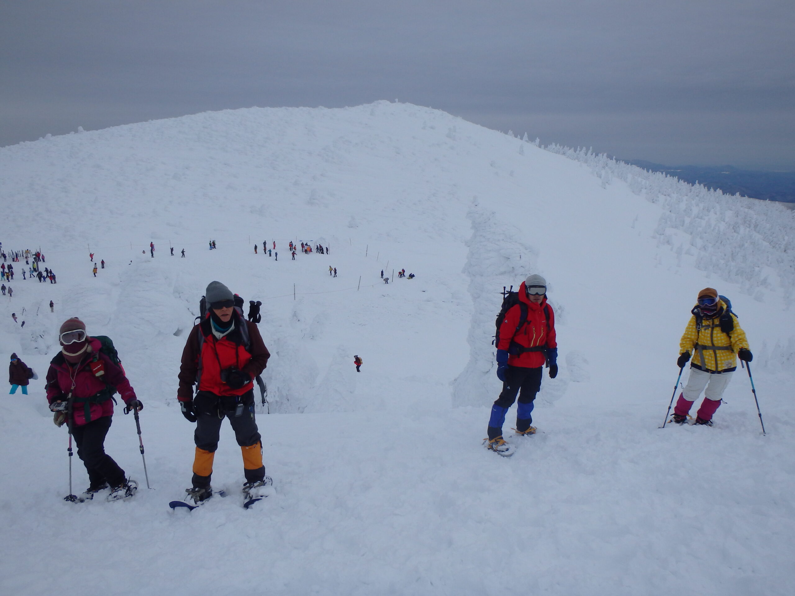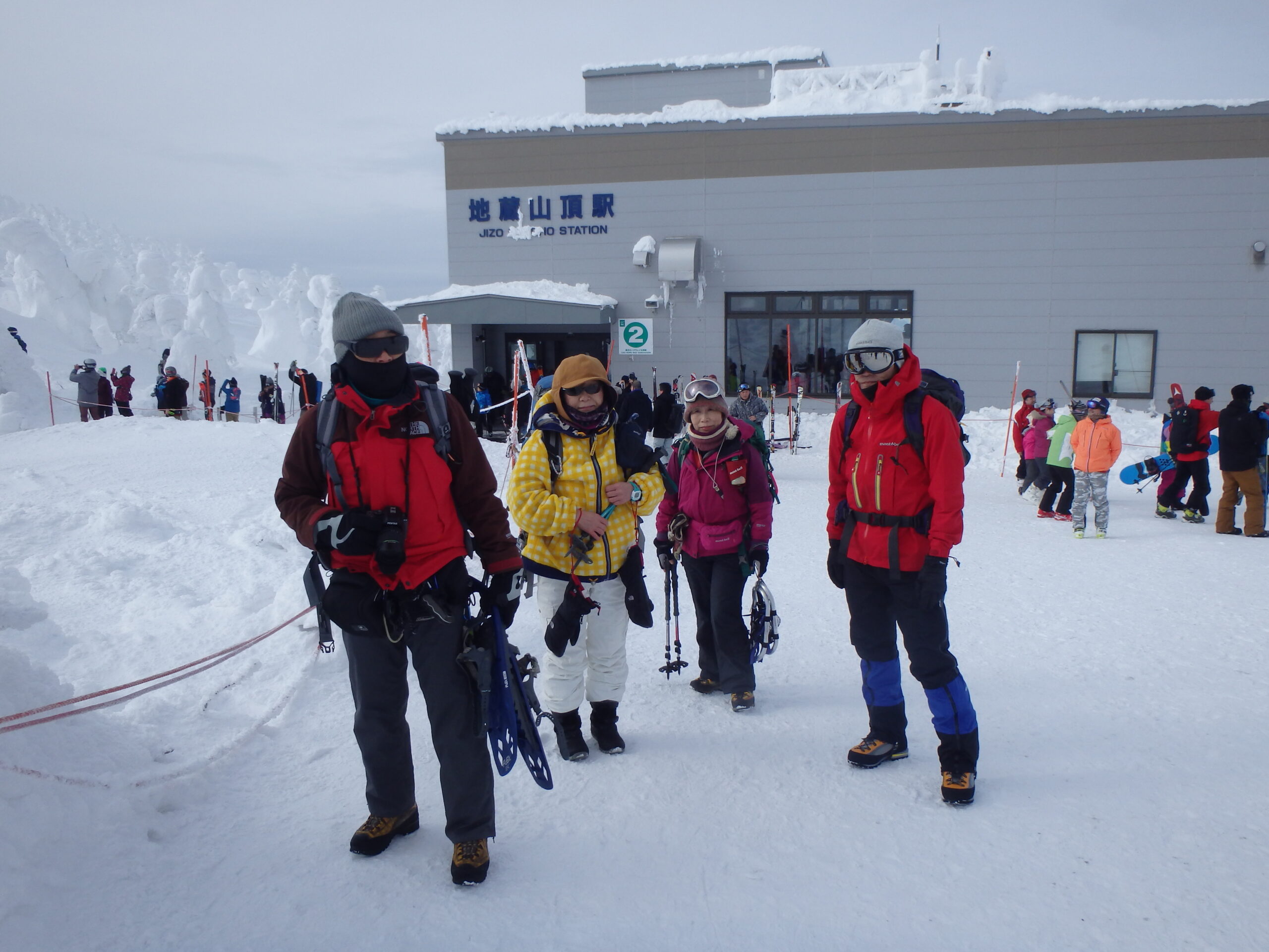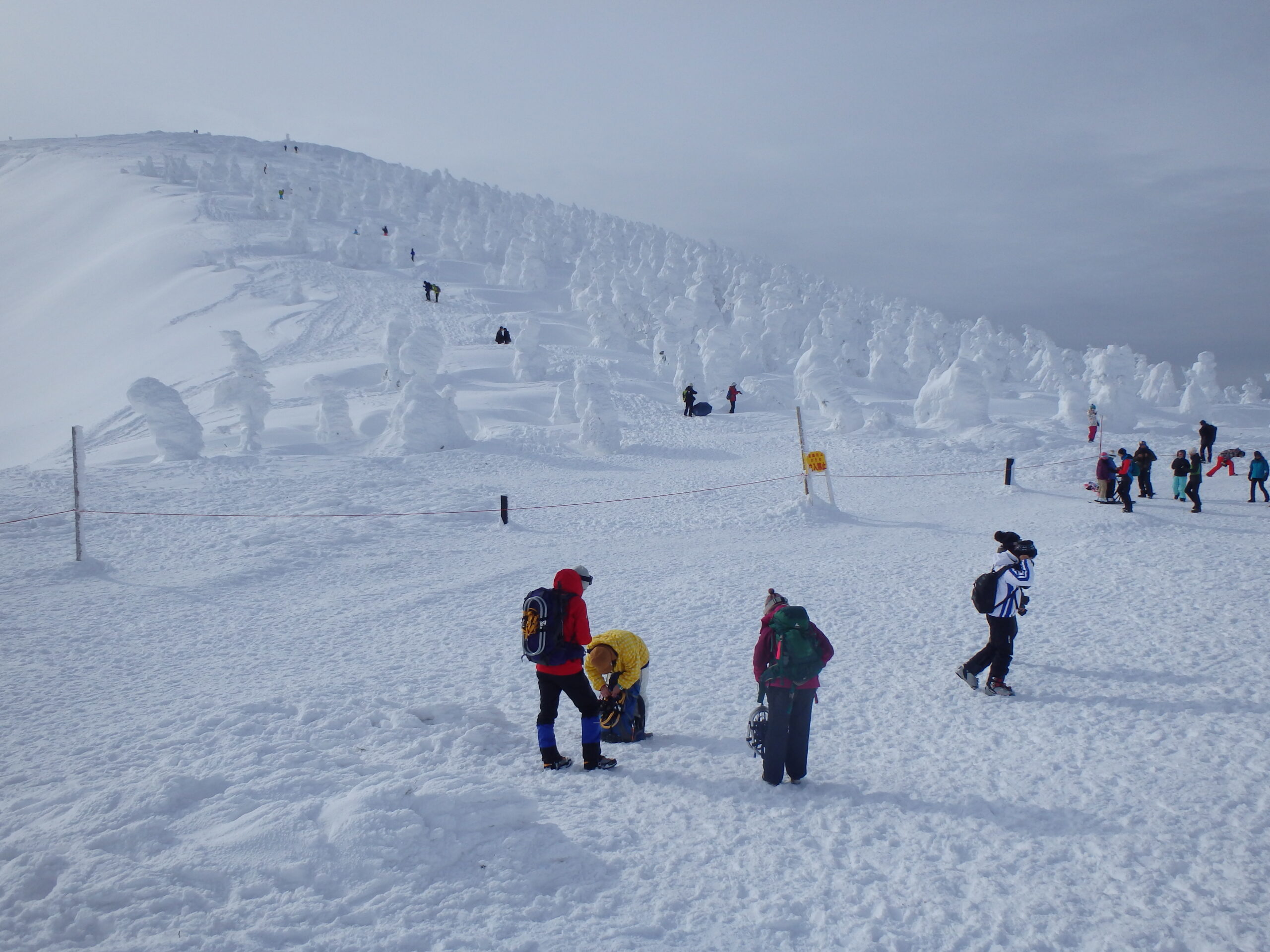 樹氷を見に蔵王山へ。スキー場のロープウェイ2本で山頂駅へ。そして地蔵山、熊野岳をピストン。8:00スキー場駐車場≫ロープウェイ2本≫9:46山頂駅≫10:37地蔵山≫12:00熊野岳避難小屋(昼食)13:00≫13:20熊野岳≫地蔵山≫山頂駅≫ゲレンデを下りて≫17:00駐車場