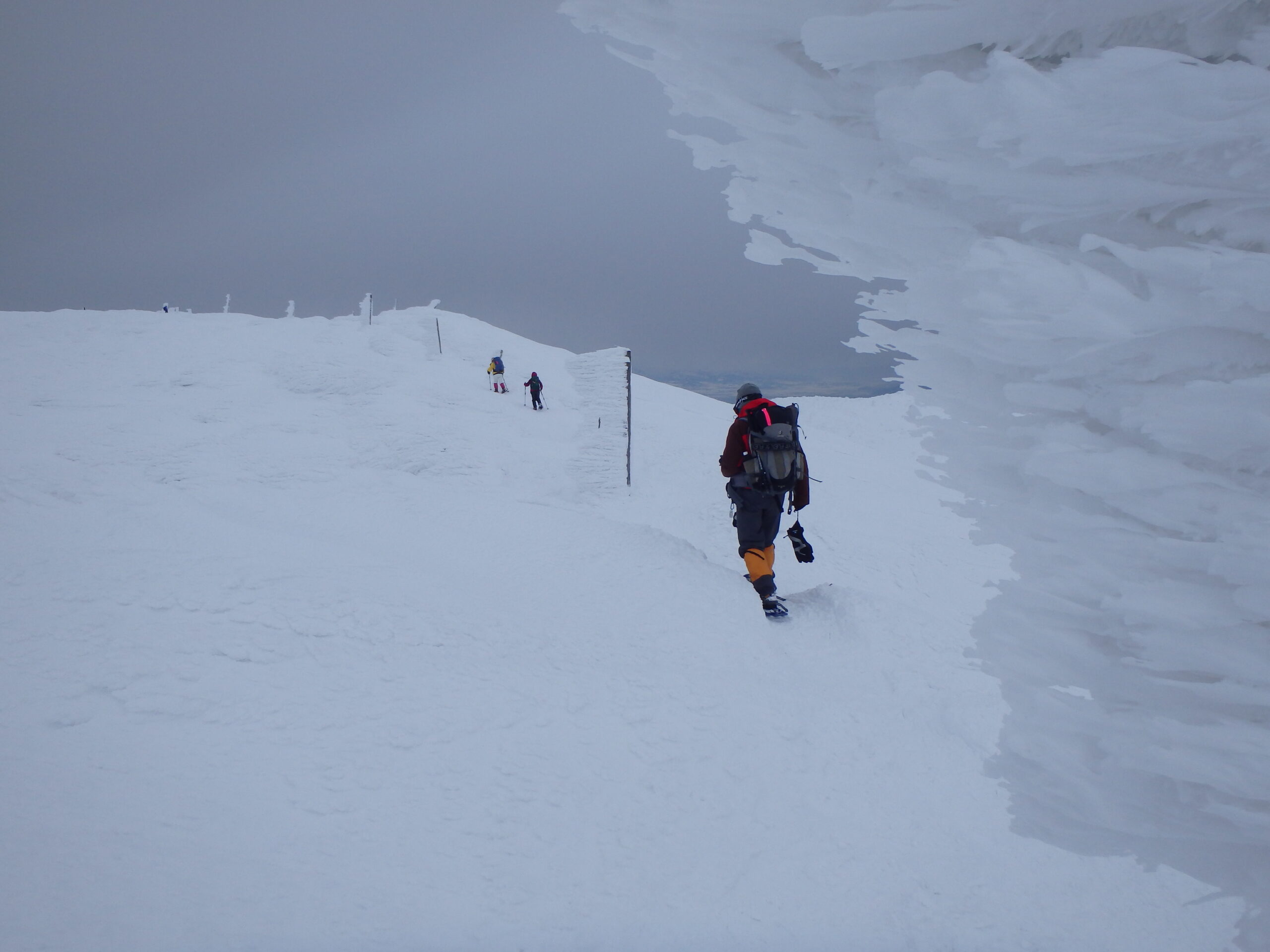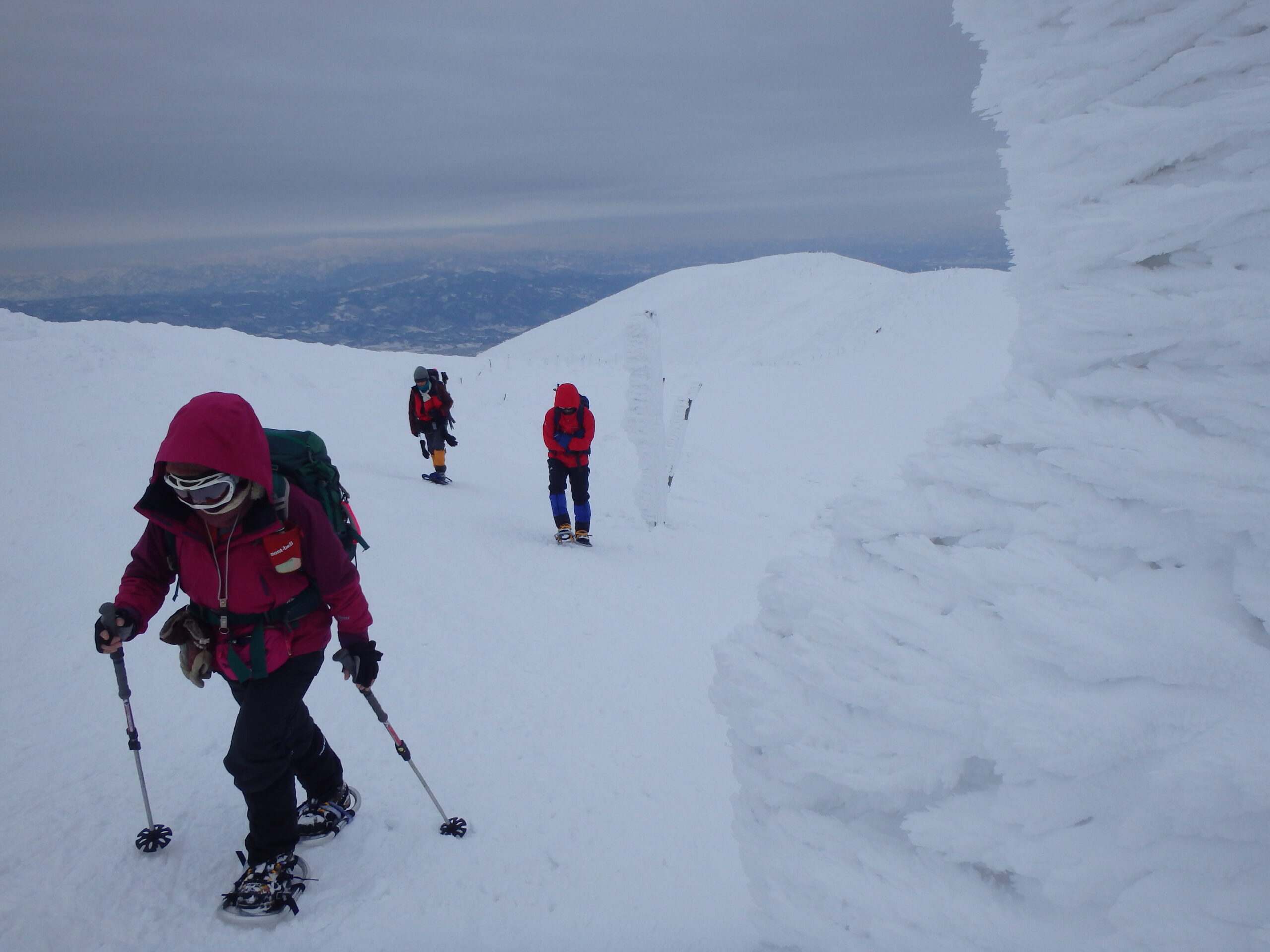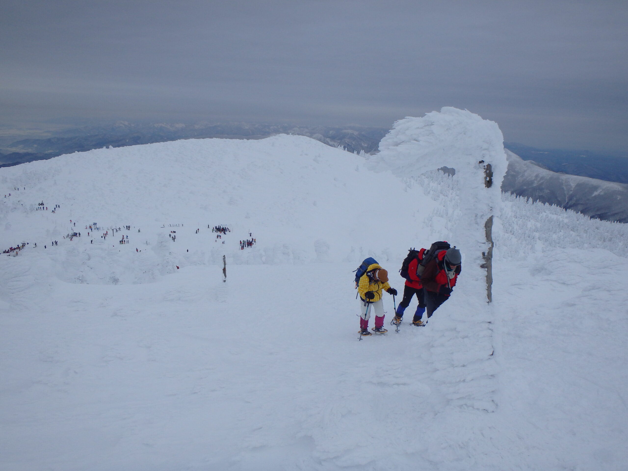 樹氷を見に蔵王山へ。スキー場のロープウェイ2本で山頂駅へ。そして地蔵山、熊野岳をピストン。8:00スキー場駐車場≫ロープウェイ2本≫9:46山頂駅≫10:37地蔵山≫12:00熊野岳避難小屋(昼食)13:00≫13:20熊野岳≫地蔵山≫山頂駅≫ゲレンデを下りて≫17:00駐車場