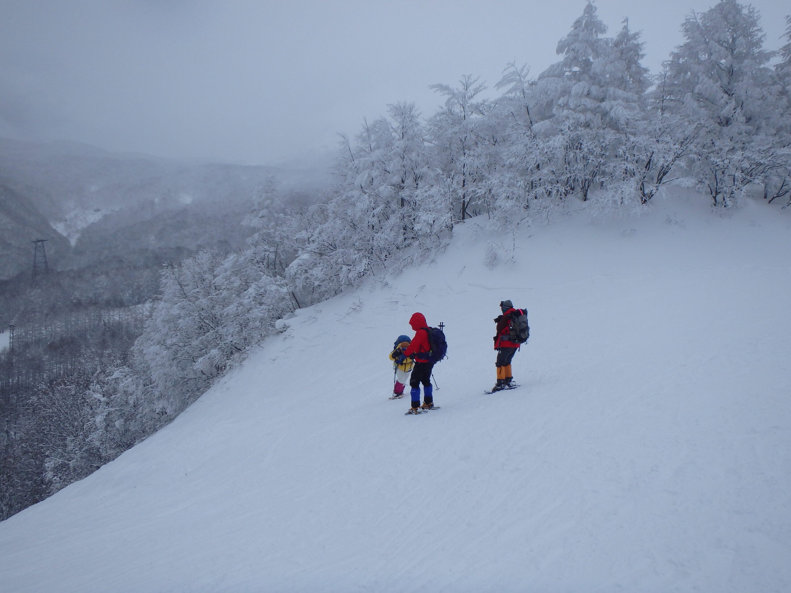 山頂駅からはゲレンデの端を歩いたが、滑り下れば10分、20分なのに、歩いては長かった。