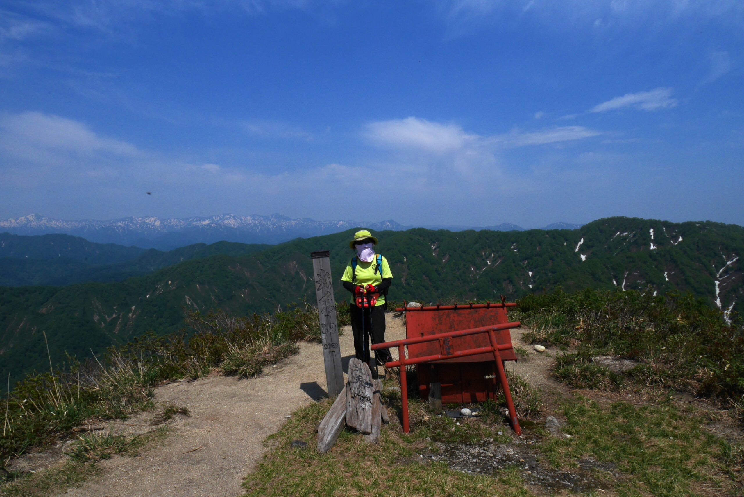 後ろは頭巾山、奥左にに祝瓶と大朝日