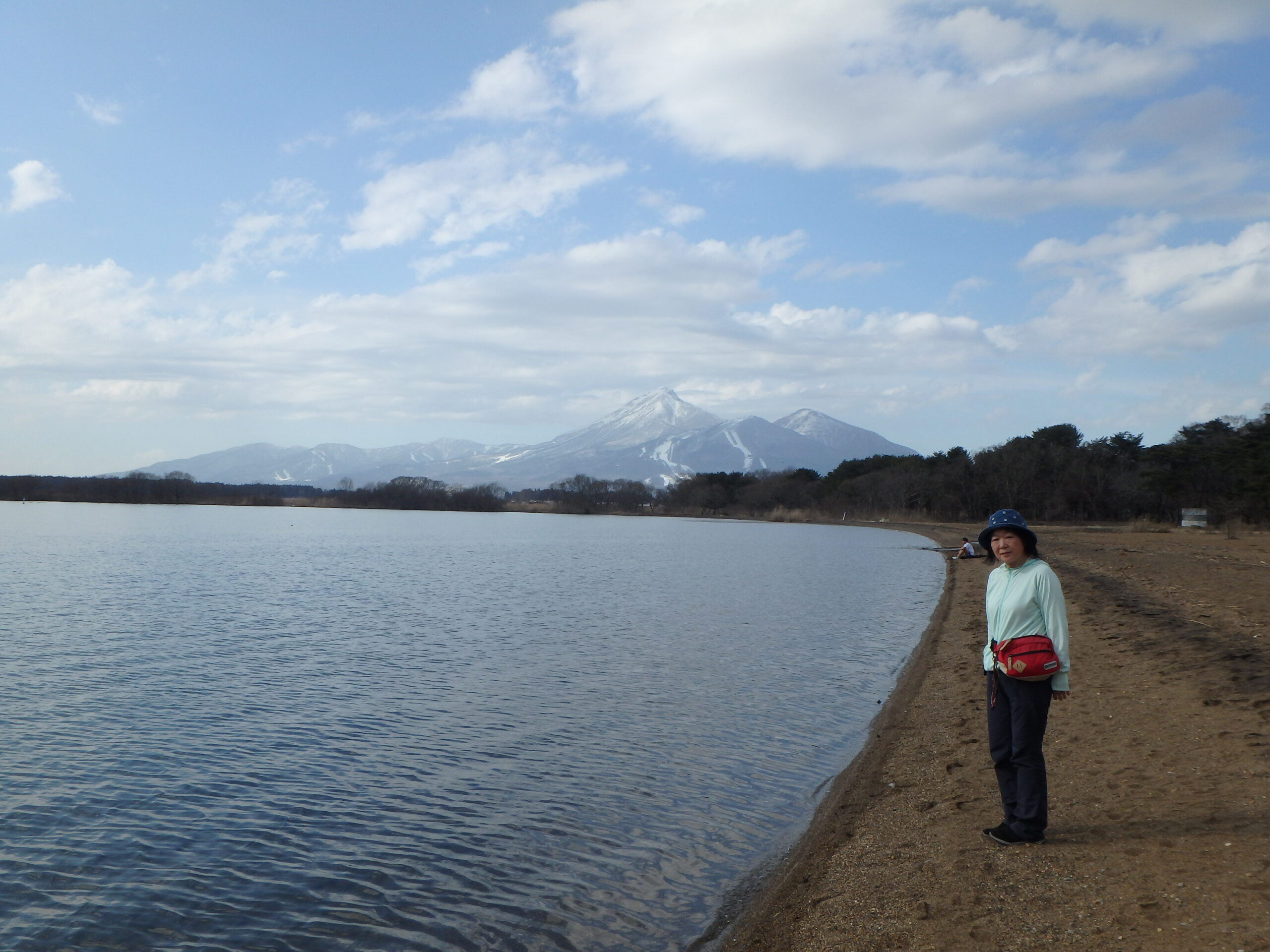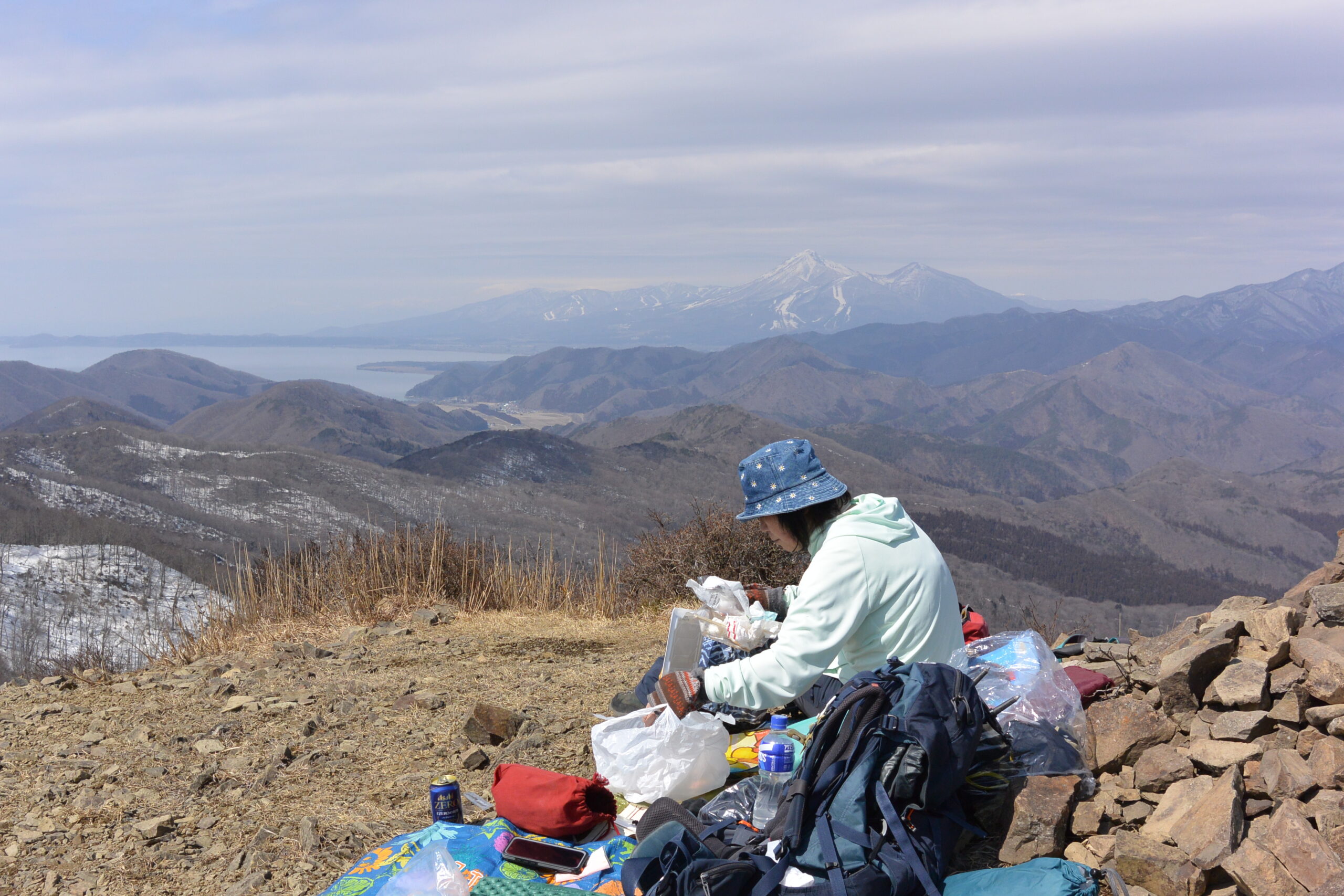 猪苗代湖、磐梯山を見ながら昼食