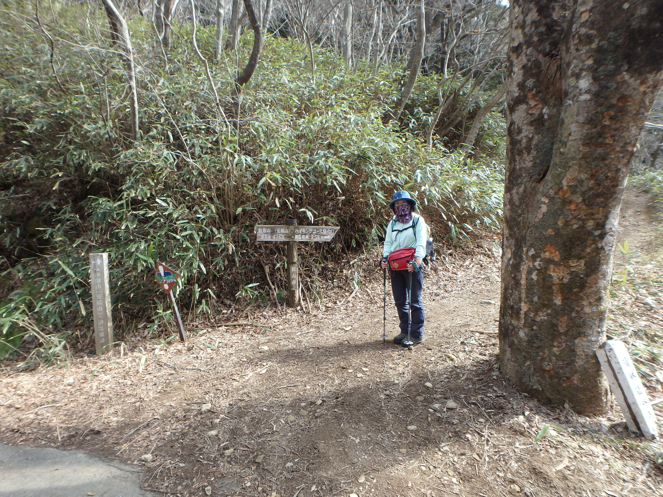 登山道というより作業道のような広い道。トレランをする三人組とすれ違う(額取山二往復)。