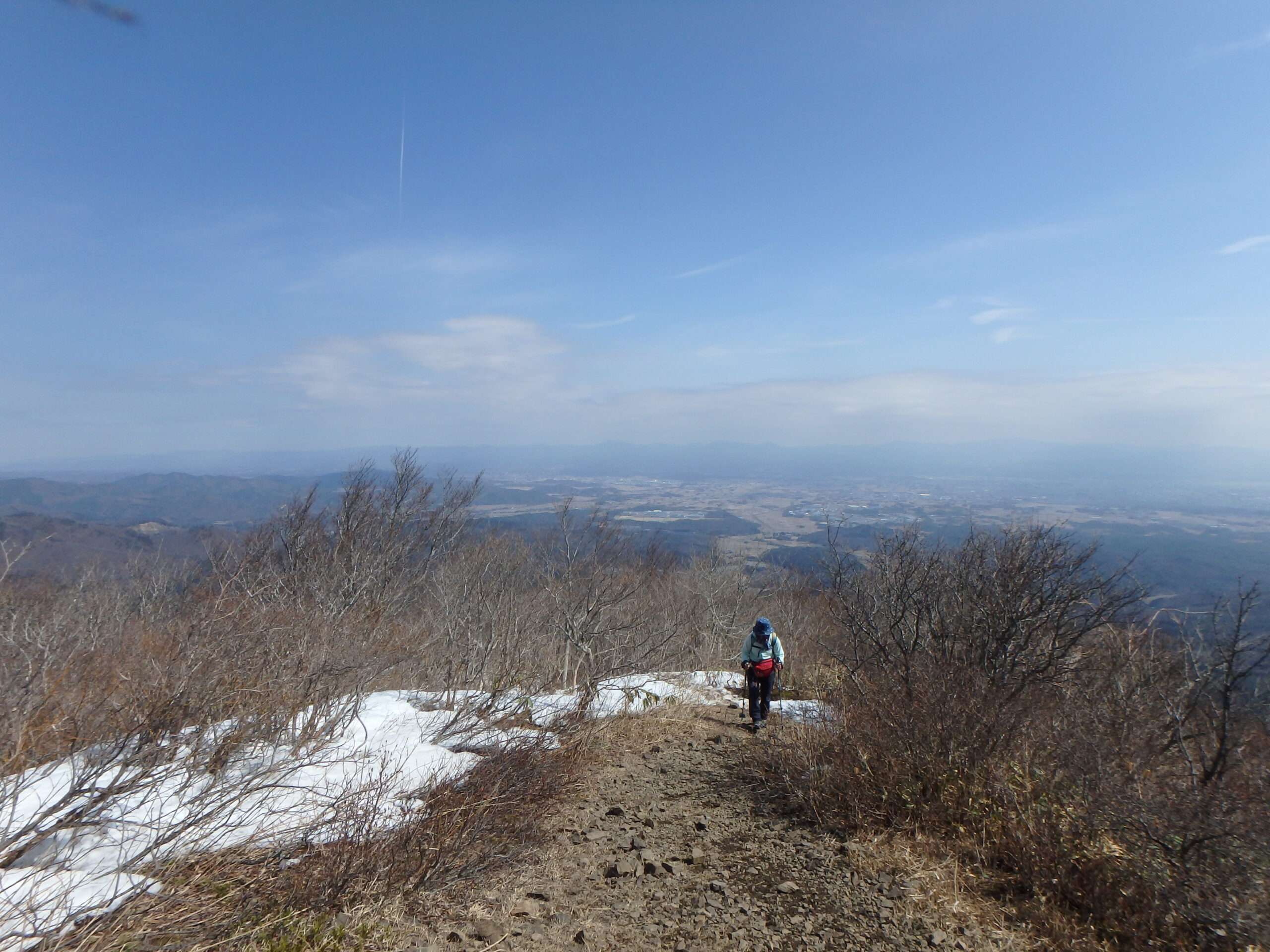 霞んで良く見えないが、後ろは郡山と阿武隈山地