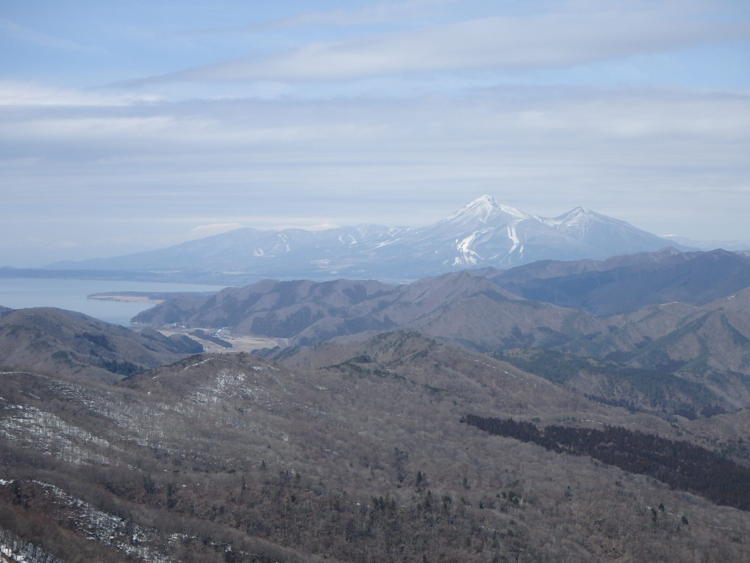 山頂から少し先の展望台から猪苗代湖と磐梯山