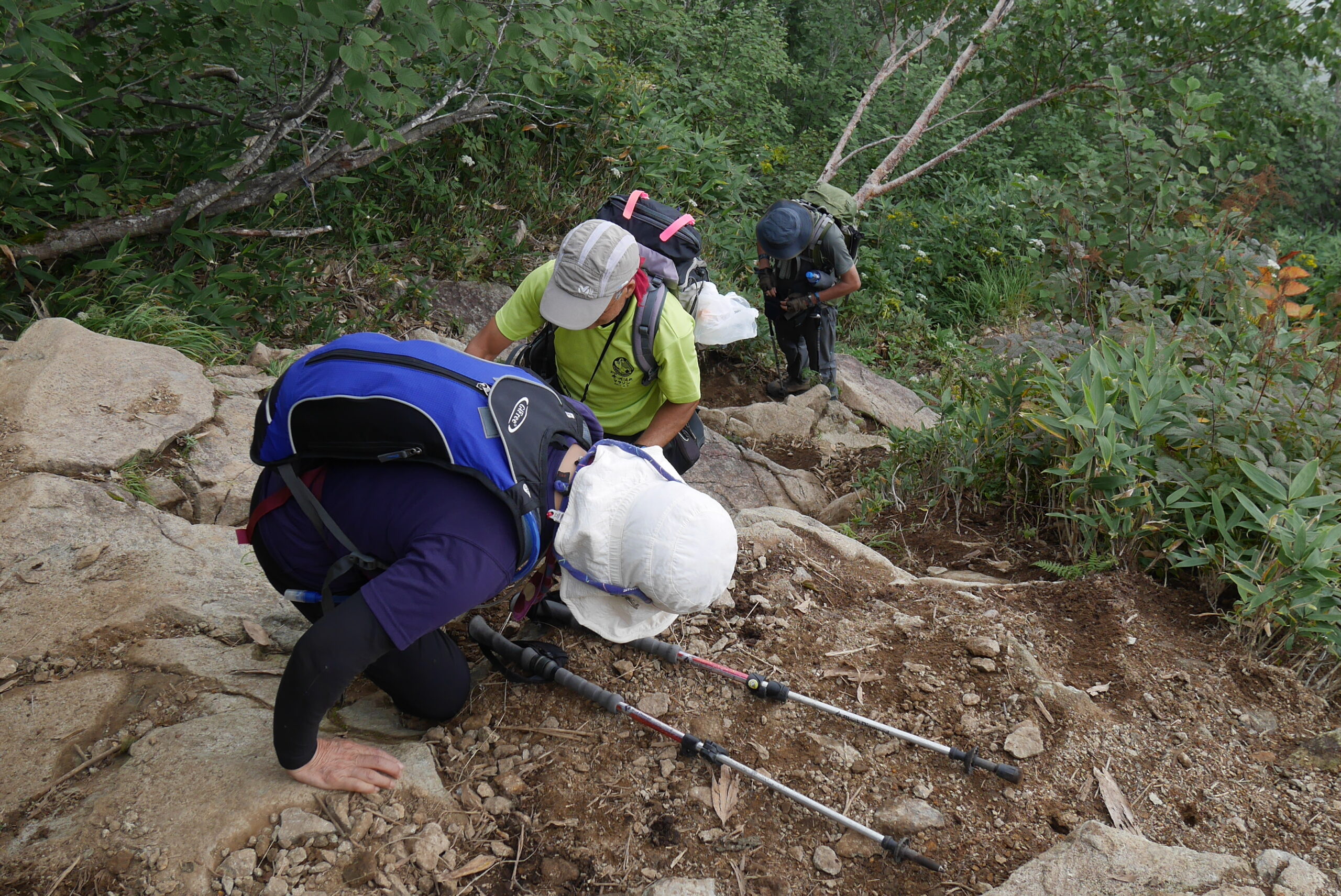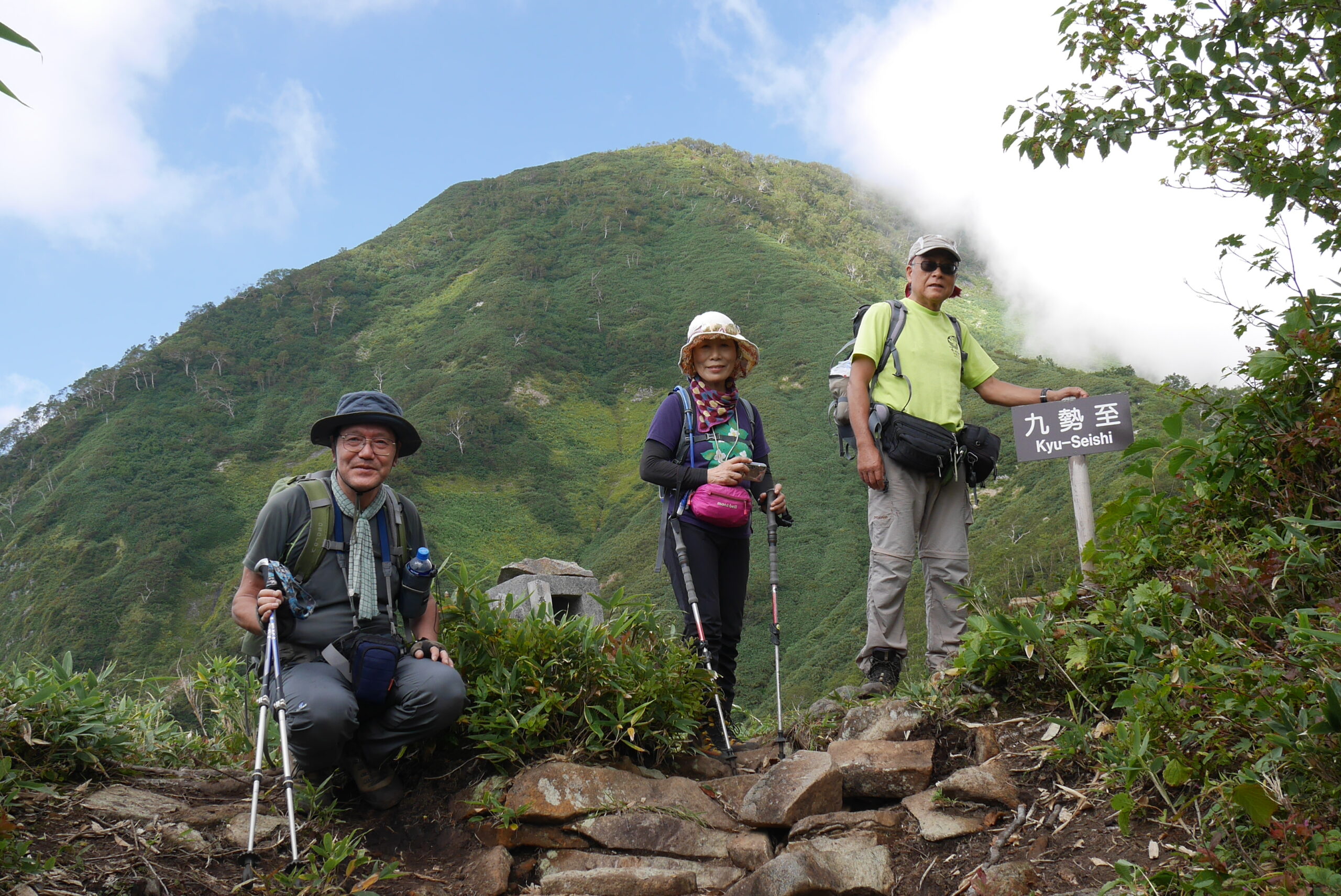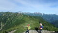 稜線から頚城三山(妙高、火打、焼山)が見えた。