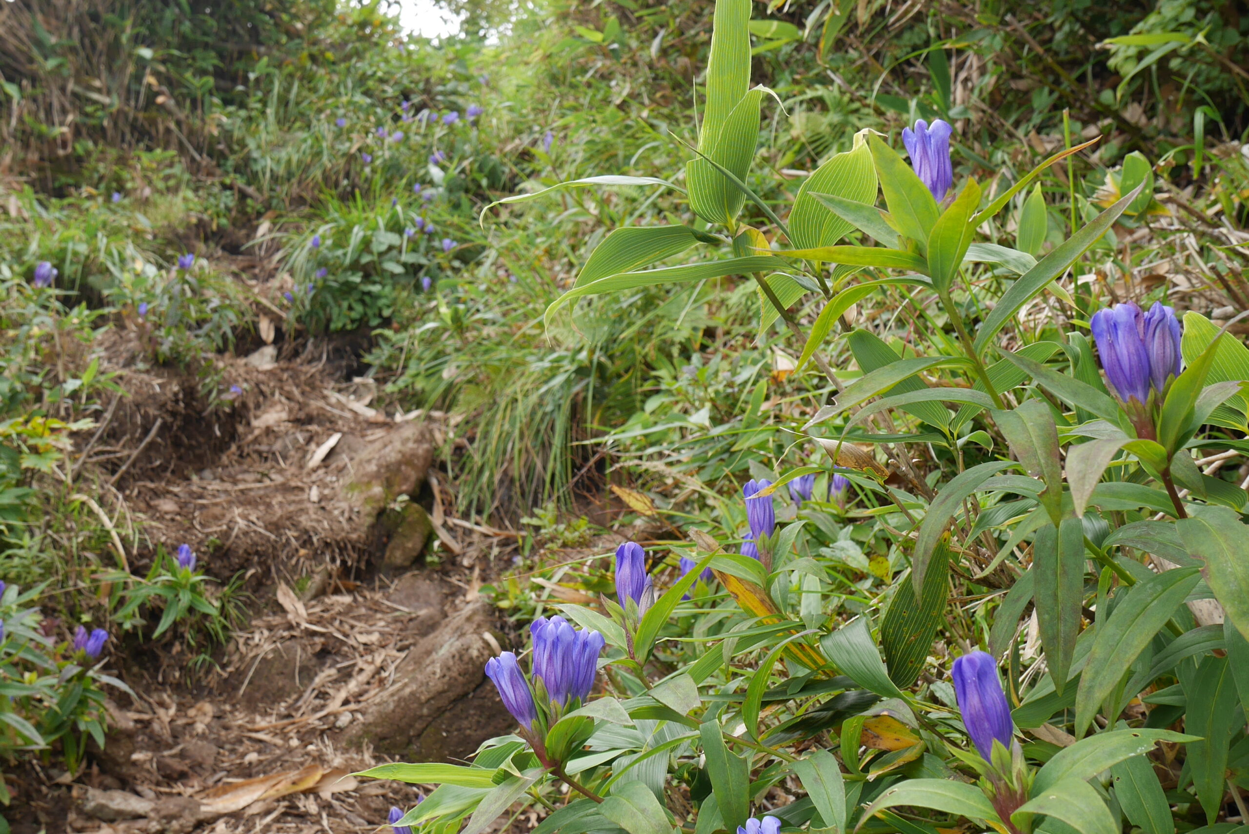 高妻山にはトガクシショウマが咲くというが、それは春の話で、今はリンドウばかりが見事に咲いていた。その美しさに打たれてか、綿野舞さんが島倉千代子のリンドウの歌とかを歌い出して、私は大変結構だと思ったが、氏のブログに記されたように「止めた方が良い」みたいな事を確かに言った。リンドウも美しい、氏の歌声も濃むらさきの花のように清澄なものだったので、二つがハーモニィとなって登山者を恍惚とさせ、足を滑らせてはいけないと思ったに違いない。しかし、今思えばいささか杞憂というものであって、全部聴けば良かったと悔いる故せめて歌詞だけでもと載せたものだ。